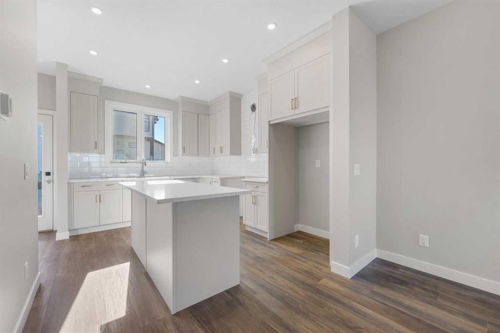 Move-In Ready | The Newport IV | Built by Broadview Homes | 1,380 SqFt | 3 Bed, 2.5 Bath | Top of the Line Finishes | Sparkling Quartz Countertops | Stainless Steel Appliances – Builder’s Package | Full Height Cabinets | High Ceilings | Incredible Natural Light | South Facing Backyard | Alley Access | Rear Parking Pad. Welcome to the Newport IV by Broadview Homes — a beautifully designed brand new, move-in ready home offering 1,380 square feet of refined living space with 3 bedrooms and 2.5 bathrooms. Perfectly tailored for modern living, this home combines elegant finishes with functional design in a bright and open layout. The main level features 9’ ceilings that create a spacious, airy feel throughout. A sunlit Great Room welcomes you in and flows seamlessly into the dining nook and stylish kitchen. Thoughtfully designed for both everyday comfort and entertaining, the kitchen showcases a large central island, pot lights, and high-quality cabinetry by Wildwood Cabinets, complete with soft-close doors and drawers. The open-concept layout ensures effortless flow and connection between living spaces. Upstairs, the private primary bedroom offers a peaceful retreat with a walk-in closet and a well-appointed ensuite bathroom. Two additional bedrooms are generously sized and share access to a sleek main bathroom, while the convenient upstairs laundry makes everyday living even more effortless. Crafted with care and quality, this home includes high-efficiency, low-maintenance 100% vinyl windows, an engineered floor system, superior carpet, and a wide selection of luxury vinyl plank flooring and tile in all wet areas. Designed with future potential in mind, this home is also ready for a legal basement suite (subject to city approval). It features a separate side entrance, 9’ basement ceilings, kitchen sink and laundry rough-ins, and a second furnace with HRV system—making it ideal for a mortgage helper or multigenerational living. Located in a desirable new community, this move-in ready home offers an exceptional opportunity to enjoy the quality, style, and peace of mind that comes with owning a brand new Broadview Home. Schedule your private showing today and experience the best of modern living!