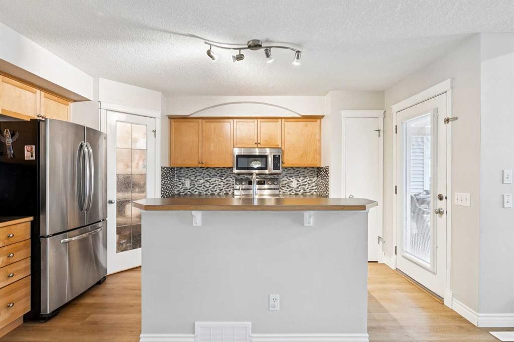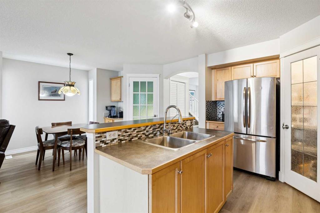 McKenzie Towne, 45 Prestwick Rise SE: Welcome to the sought-after community of McKenzie Towne. This fully developed two-storey sits on a quiet, tree-lined street and features 3 bedrooms, 2.5 bathrooms, central A/C, and an oversized double detached garage. The main floor has vinyl plank flooring throughout and a bright, comfortable layout. The front entry opens to the formal living room and 2 pc powder room at the front of the house. The central kitchen features stainless steel appliances, a corner pantry, a breakfast bar for extra seating, and door access to the back deck. The dining area is spacious and opens to the cozy family room with vaulted ceiling, gas fireplace and west-facing windows that fill the space with natural light. Upstairs, you’ll find a spacious primary bedroom with a walk-in closet, as well as two additional bedrooms, and a 4 pc main bathroom. The fully developed lower level is currently used as a fitness area, but has plenty of room to create a rec space or add a 4th bedroom. There is also a 3 pc bathroom and a laundry room to complete the basement. The west-facing backyard is perfect for summer evenings and features a deck, a generous yard, and an oversized double garage. Updates include the house roof in 2020 and the garage built in 2023. McKenzie Towne offers schools, parks, playgrounds, the shops on High Street, and beautiful Inverness Pond. This home is close to all the amenities along 130th Avenue and provides easy access to Deerfoot Trail, Stoney Trail, and South Health Campus. Call for more info!