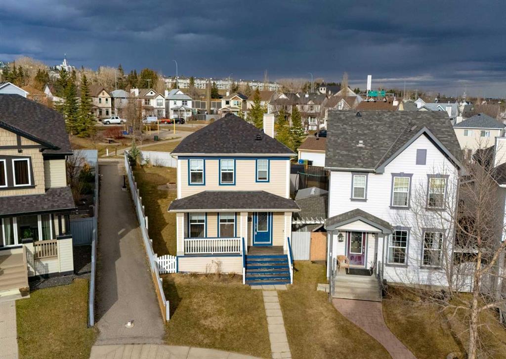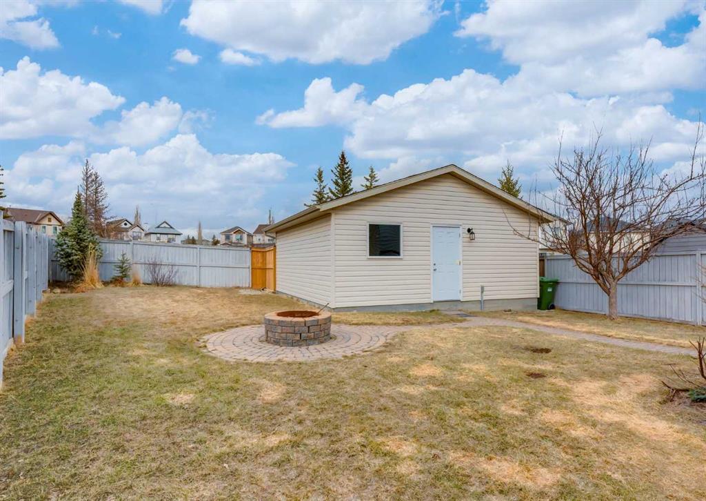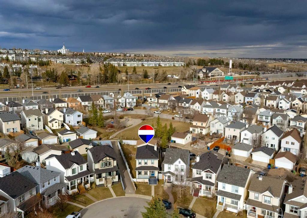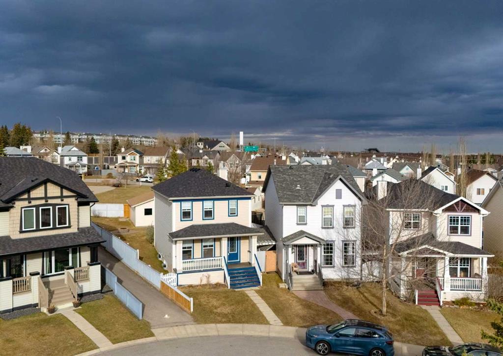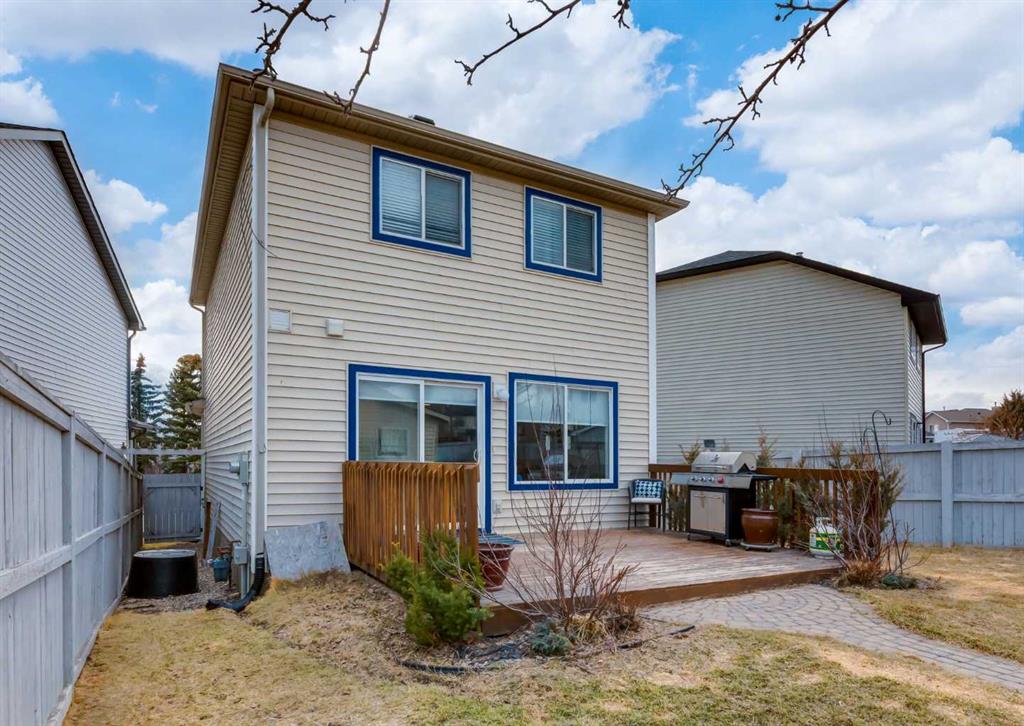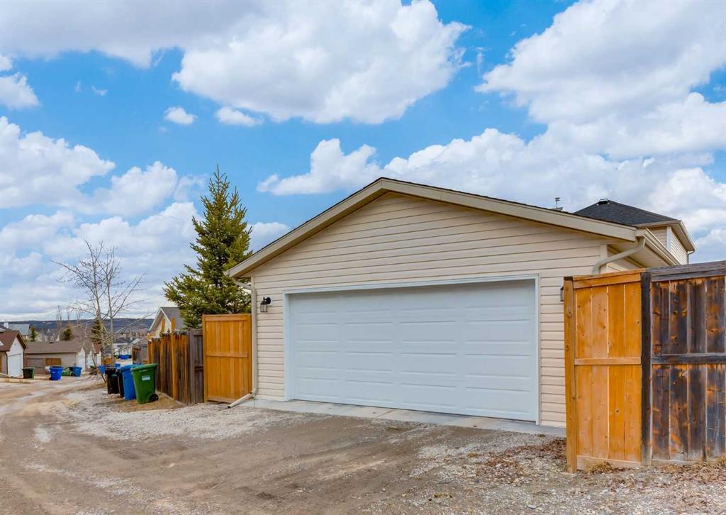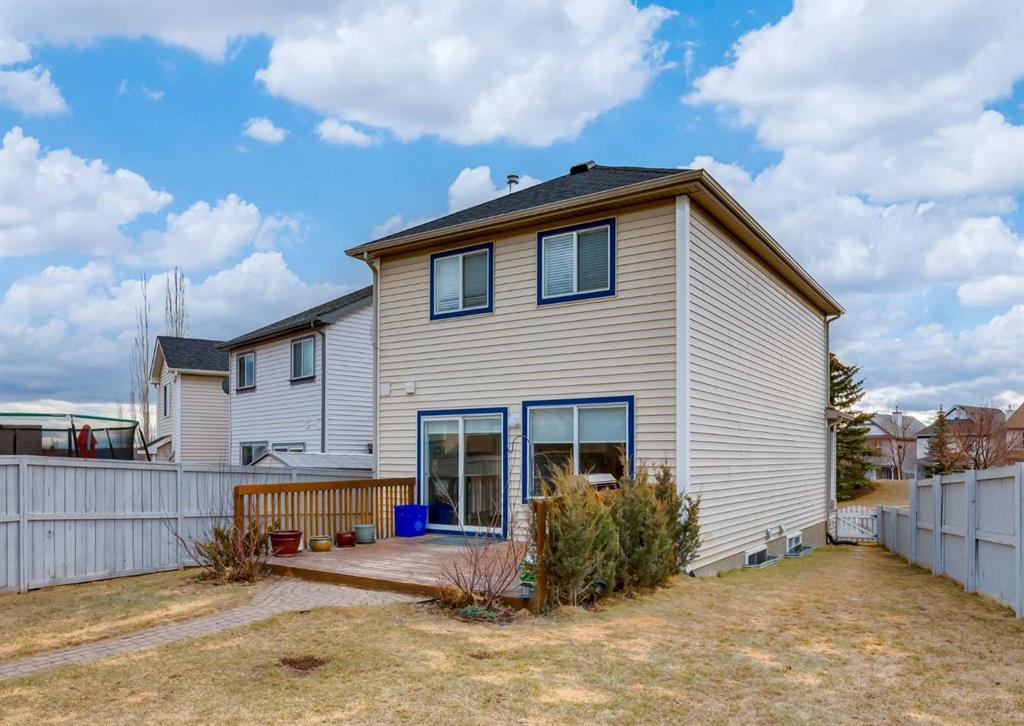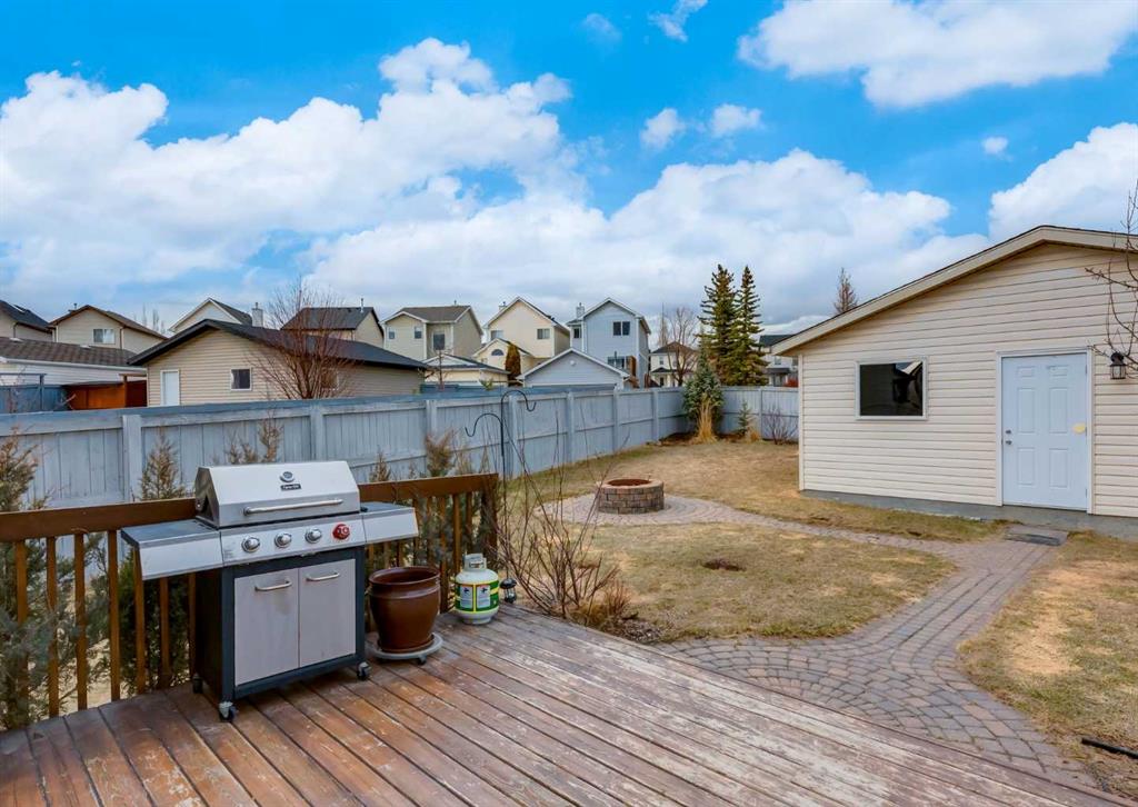 Tucked into a quiet cul-de-sac in the heart of Tuscany, this 3 bedroom, 2.5 bathroom home sits on a rare pie-shaped lot and offers the kind of location buyers wait for, complete with a newly built oversized double detached garage from 2022. Facing a charming green space and just steps to a larger playground, it perfectly blends family-friendly living with everyday convenience. The inviting front porch sets the tone with timeless curb appeal and a sunny place to unwind while taking in the mountain views. Inside, a bright and thoughtfully designed open-concept layout lives larger than expected, with clear sightlines from front to back and an abundance of natural light pouring through oversized windows. The front living room captures peaceful views of greenspace, while the kitchen and dining area overlook the expansive, fully fenced backyard. The kitchen is both functional and welcoming with black appliances, a central island with seating, corner pantry, and a built-in desk perfect for busy households. Step outside to the large back deck, ideal for summer BBQs and relaxing evenings in your oversized yard with firepit. Upstairs offers three well-sized bedrooms including a primary retreat with its own 4-piece ensuite and stunning mountain views, plus an additional full bathroom. The partially finished basement provides a spacious rec area for movie nights, a playroom, or home gym, along with a large utility room with laundry and plenty of storage. Thoughtful updates include shingles done in 2025, powered blinds on the main floor, and newer carpets. This is a rare opportunity to own a move-in ready home on an oversized lot, offering space, comfort, and an unbeatable location. Walking distance to C-Train, parks, trails, and close to amenities like Starbucks, Sobeys, and The Last Straw. The Tuscany Club offers exclusive access to a splash park, tennis courts, a skateboard park, outdoor rink, and more. With easy access to Hwy 1A, Stoney Trail, and public transit, this home combines convenience with a family friendly atmosphere. Book your private showing today!