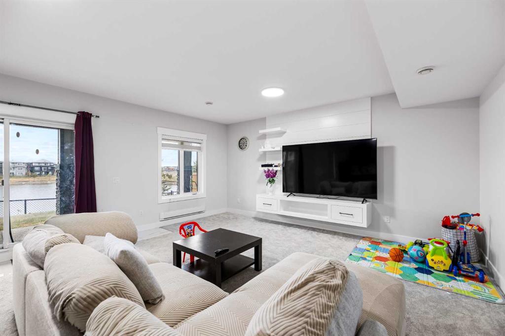 Experience waterfront luxury in this recently completed custom build on a premium, extra large 50-ft walkout lot. Backing onto tranquil waterfront and scenic pathways in Chestermere’s Waterford community, this home showcases over 4,500 sq ft of living space, and $150K in premium builder upgrades. The main level features large format polished marble tile, a chef’s kitchen with maple cabinetry, marble countertops, and a spice kitchen fully equipped with upgraded appliances. An elegant living area with gas fireplace, beautiful open-tread staircase, and a full width glass-railed deck overlooking the water. Upstairs includes a family room overlooking the open-to-below great room, four bedrooms, a spa-inspired primary ensuite, a junior primary with ensuite, and large laundry with a sink and extra storage. The walkout 2 bedroom basement is a legal secondary suite, fully developed by the builder to match the professional craftsmanship of the upper levels—perfect for multi-generational living or rental income. Complete with a triple car garage, dramatically impressive lighting upgrades, and extensive maple millwork and custom feature walls, this home defines modern waterfront living in Chestermere.