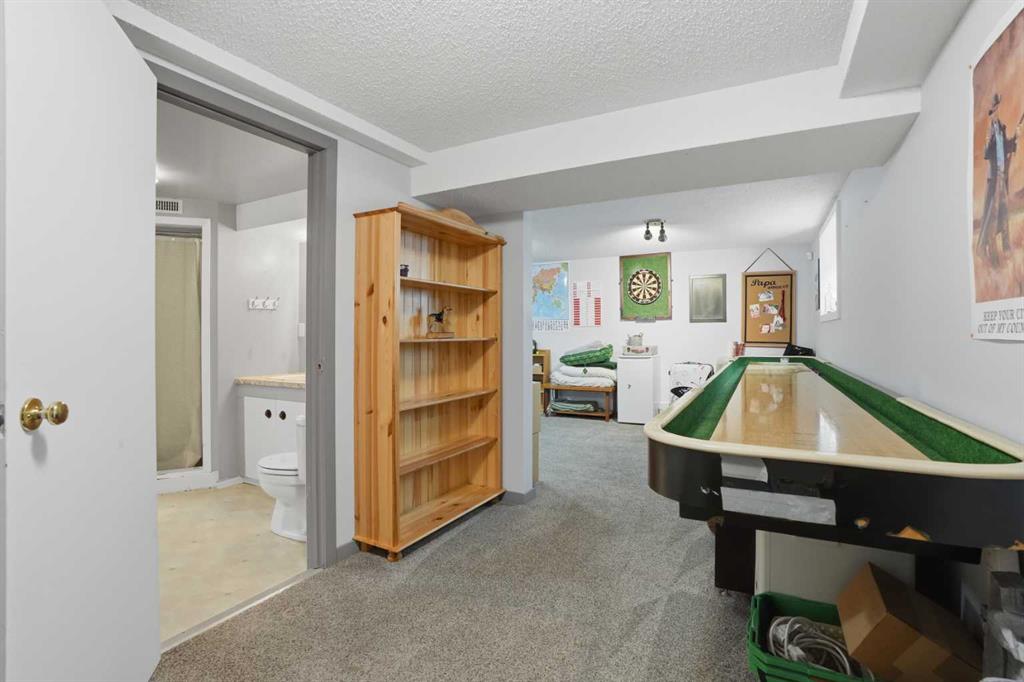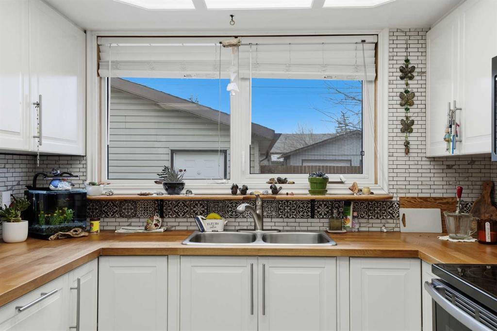 OPEN HOUSE Saturday, Nov 15th, 2pm-4pm. Don’t miss your chance to own this excellent property with many updates in recent years including roof shingles, fence, garage door & opener, large basement windows (note: all vinyl windows throughout), dricore flooring in basement, high efficiency furnace and hot water tank, and an updated kitchen! This bungalow has a lovely curb appeal with stone and brick touches, generous front and back yards, low maintenance landscaping, and a new fence! Inside, hardwood flooring covers most of the main level, which is nicely opened to the recently renovated kitchen including all new cabinetry, wood counters, and upgraded appliances! A well-sized primary bedroom has space for a king bed and full bedroom set! The main level is complete with 2 additional bedrooms and a full bathroom. Downstairs, the large recreation room is a great space for your family to spread out for hobbies and relaxation! There’s a 4th bedroom and another full bath down. 2 storage rooms and a separate laundry/utility room provide ample indoor organization. The double detached garage is also oversized, providing excellent storage space here overall! The front parking pad can be used for additional vehicles or your RV! There are no neighbours on the parking pad side, as this home sides a pathway. You’ll have a quick walk to nearby playgrounds, schools, an outdoor rink, and more! It’s a short drive to many commercial amenities, and this excellent accessible location will have you within 10 minutes or less to Downtown Calgary, Deerfoot Trail, Stoney Trail, 16th Ave, and Glenmore Trail!
