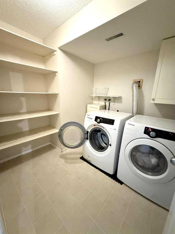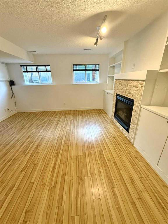 Upstairs, the primary bedroom is a peaceful retreat with extra windows and a massive walk-in closet — perfect for even the most extensive wardrobe. A second spacious bedroom and a 4-piece family bathroom complete the upper level. The lower level offers a warm and inviting family room with a cozy fireplace flanked by custom built-ins, large windows with backyard views, another 4-piece bathroom, and a well-equipped laundry area with plenty of storage. This space is perfect for guests, a home office, gym, or hobby area.