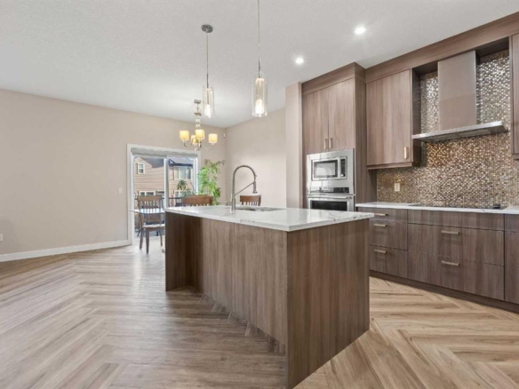 Welcome to Winston Heights Mountview! This modern infill comes with a legal basement suite with its own entrance and offers over 2400 sq. ft. of finished space. It features 5 bedrooms and 3.5 bathrooms, with high-end finishes throughout. The main floor has 10’ ceilings, big windows, an open dining area, and a stylish kitchen with quartz counters, a large island, and KitchenAid stainless steel appliances. The living room includes a gas fireplace, built-in shelves, and access to the patio. Upstairs you’ll find the primary bedroom with a 5-piece ensuite and walk-in closet, plus two more bedrooms, a full bathroom, and laundry. The basement has 9’ ceilings and a fully legal 2-bedroom suite with its own kitchen, living space, and laundry—great for family or rental income. This home also includes a double garage, downtown views from the front, and an excellent location close to schools, parks, shops, and just minutes from downtown. One of biggest backyards in this area.