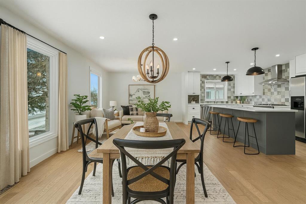 What a location !! Your move to Cochrane starts here. Tucked away on a peaceful, tree-lined street in Cochrane’s charming Old Town East Side, this beautifully renovated 1,250 sq. ft. bungalow offers the perfect blend of modern comfort and small-town serenity. Backing directly onto a tranquil hillside Ravine & Reserve. The setting alone feels like a private retreat. Step inside to an open, airy main floor where wide-plank hardwood flows throughout and natural light pours in through brand-new windows. The stunning new kitchen features quartz counters, a generous island, new appliances, and a seamless sightline over the living and dining areas—all framed by elegant California ceilings. With 3 bedrooms up, 2 fully updated bathrooms, and a convenient main-floor laundry, every inch of this home is designed for effortless living. The primary suite includes its own ensuite, and a massive pantry offers exceptional storage. Both back bedrooms have doors that open onto a sprawling new back deck and additional patio space—ideal for morning coffee, evening gatherings, or simply soaking in the peaceful reserve views. Central air conditioning, a new high-efficiency furnace, updated electrical and plumbing, new blinds, pot lighting, and a fresh H2O tank ensure comfort and reliability throughout. Outside, the appeal continues. The generous 46′ x 140′ lot is complemented by a newly paved driveway, new sidewalks, a welcoming front porch, gemstone custom exterior lighting, and an oversized 2.5+ car garage with impressive 9-ft ceilings—perfect for vehicles, hobbies, or additional storage. The finished lower level expands your living space even further and offers endless versatility, along with abundant storage for everything you need to tuck away. Located just minutes from parks, schools, and downtown Cochrane—only four minutes to every convenience—you’ll have the best of both worlds: peaceful living with quick access to everything you need. A beautifully updated home, a prime location, and a lifestyle you’ll love—this is your opportunity to make Cochrane home. Perfect for a small family, a couple looking to downsize or the perfect home to retire to. Renovation was approx $100,000. PHOTOS ARE ACTUAL, BUT VIRTUAL FURNITURE HAS BEEN ADDED FOR POTENTIAL BEFORE AND AFTER IDEAS