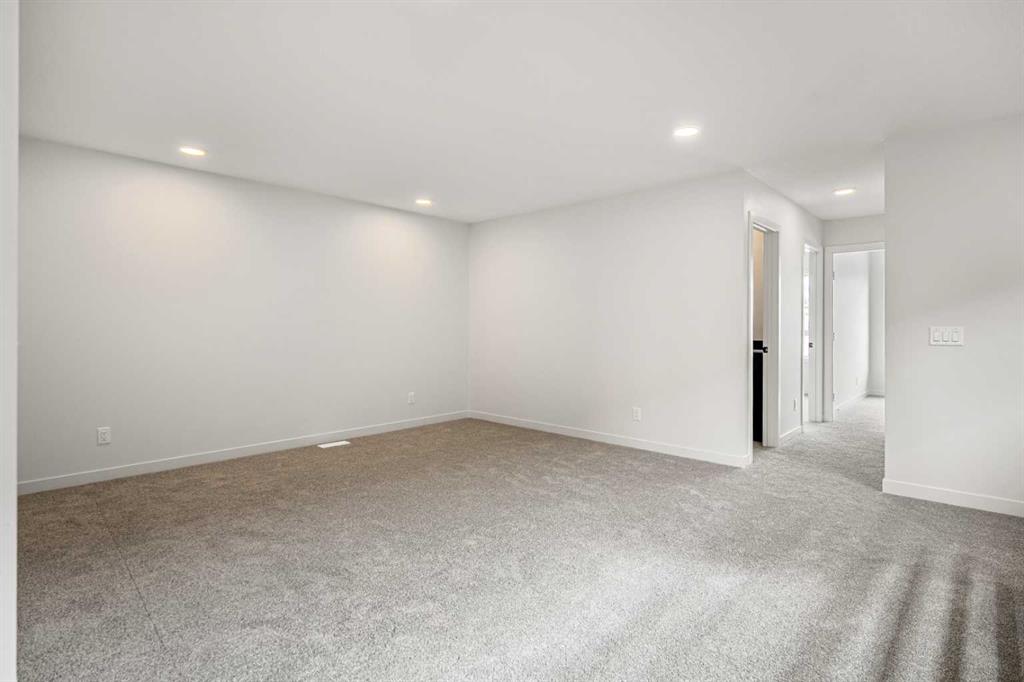 Upstairs, the layout includes a spacious CENTRAL BONUS ROOM with IRON SPINDLE RAILINGS, offering the perfect place for family movie nights or relaxation. The PRIMARY SUITE provides a luxurious retreat with a large WALK-IN CLOSET and a 5-PIECE ENSUITE featuring a FREE-STANDING SOAKER TUB and a FULLY TILED SHOWER. Two generous secondary bedrooms, a LAUNDRY ROOM, a RECREATION ROOM, and a 4-PIECE BATHROOM complete the upper level.