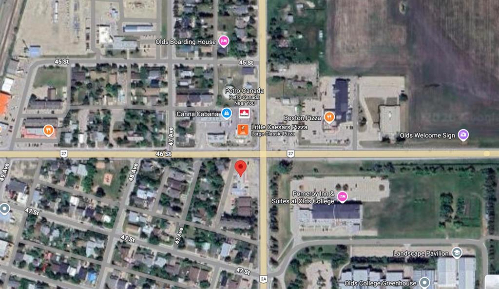 Prime commercial opportunity located at one of the busiest intersections in Olds. This ±0.65-acre CH-zoned property offers approximately 6,700 sq. ft. of commercial space with strong visibility and access. Half of the building is currently leased to a mechanic shop at $3,500/month including operating costs, with a secure lease in place until 2028 plus renewal options, providing immediate and stable cash flow. The remaining space is vacant, allowing for value-add or owner-user potential. CH zoning allows for a wide range of permitted and discretionary commercial uses, offering excellent flexibility for investors or developers. A solid income property with long-term upside in a growing market.