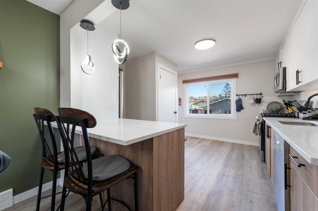 This fully renovated bungalow features a city-approved, registered legal basement suite, offering an exceptional opportunity for homeowners and investors alike. Fully permitted, conforming, inspected, and approved, the secondary suite meets current building code—providing true peace of mind, lender approval, and insurance-friendly ownership (not an illegal suite). With over 1,719 sq ft of total developed living space, this detached home offers a modern, open-concept layout with separate private entrances to both levels, making it ideal to live up and rent down, generate rental income, or operate as a long-term or short-term rental (Airbnb). The property includes 4 bedrooms and 2.5 bathrooms, with the self-contained lower suite offering 2 bedrooms, a full kitchen, in-suite laundry, large bright windows, high ceilings, and modern finishes. The main level is bright and stylish, featuring luxury LVP flooring throughout, an open-concept living space, and a trendy feature wall that adds a contemporary design touch. Extensive upgrades include: newer appliances, a recently upgraded furnace, newer fascia, soffits, eaves, fencing, railings, and numerous newer windows, creating a light-filled, move-in-ready home. Situated on a massive 5,690+ sq ft lot, this property also offers outstanding future redevelopment potential, with the ability to build a second dwelling or explore four-plex development (subject to City approval)—making this an excellent holding property and long-term investment opportunity with strong cash-flow potential. Outdoors, enjoy ample space for entertaining, recreation, or expansion, plus an oversized double garage and an additional parking pad capable of accommodating multiple vehicles or an RV. Perfectly located in the heart of historic and charming Bowness, just steps from a playground, minutes to downtown, and a quick drive to the mountains. The street itself is evolving, with new construction homes nearby, further enhancing future value. Whether you’re a first-time buyer seeking a mortgage helper, an investor looking for a revenue-generating property, or a homeowner wanting flexibility and growth, this is a rare and compelling opportunity not to be missed.