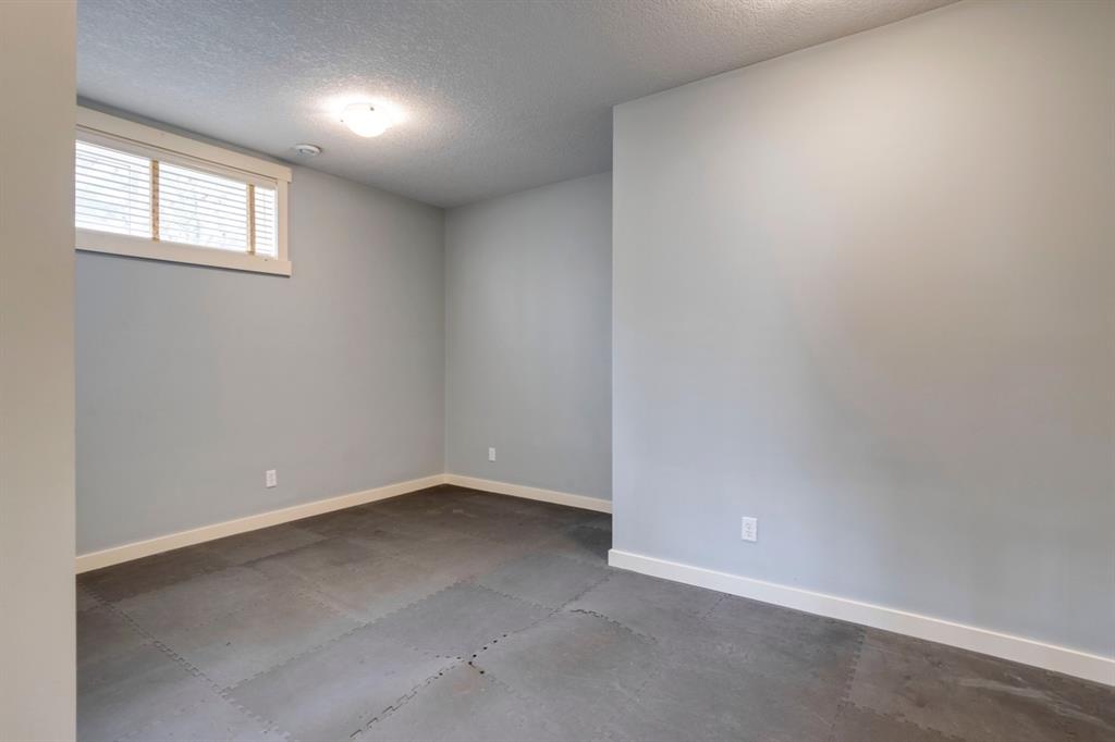 The fully finished walkout basement extends the living space with a large bedroom, full bathroom, expansive recreation room featuring a third gas fireplace, and a private flex area ideal for a home gym or hobby room.
