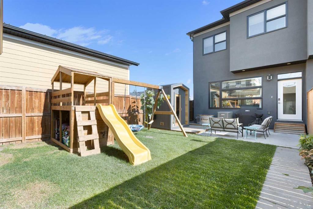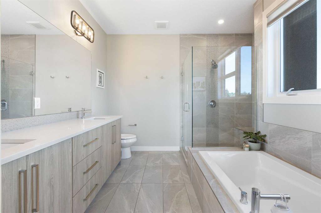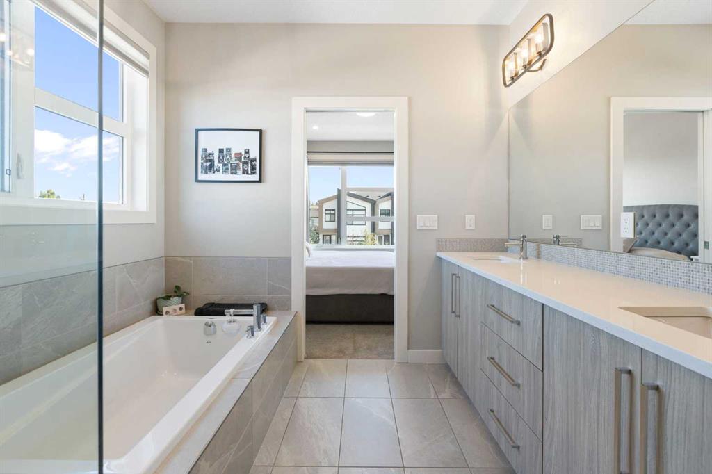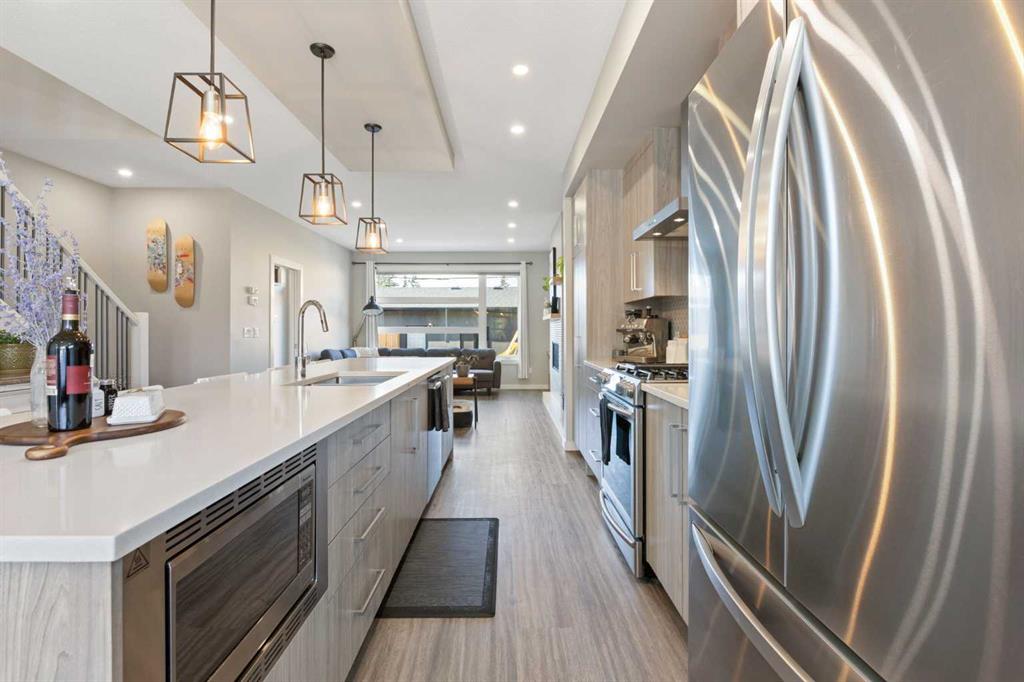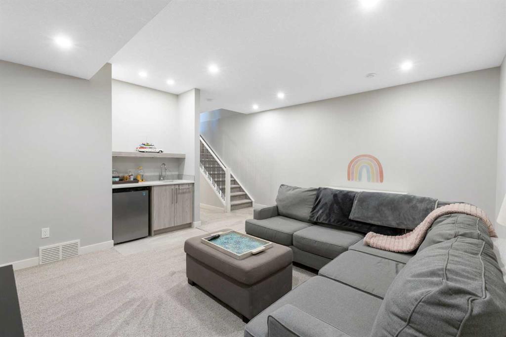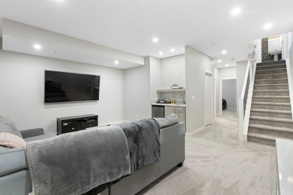 Experience the pinnacle of modern luxury in this custom-built, semi-detached sanctuary located on a tranquil, extra-wide street in the heart of Bowness. Beyond the striking contemporary facade lies an interior defined by sophisticated design and effortless flow. The main level is flooded with natural light from expansive west-facing windows, illuminating wide-plank luxury vinyl flooring and a seamless open-concept layout crafted for both grand entertaining and intimate family moments. At the center of the home is a gourmet kitchen that is as functional as it is beautiful. An oversized quartz island with seating for five serves as a natural gathering spot, complemented by chic pendant lighting, high-end cabinetry, and premium finishes. The transition from the designer dining area to the living room is flawless, anchored by a cozy gas fireplace with a refined wood mantle and custom built-ins that add a touch of architectural interest. Practicality is tucked away discreetly in the form of a stylish powder room and a dedicated rear mudroom designed to handle the demands of an active lifestyle. The upper floor is a masterclass in comfort, headlined by a primary retreat that feels like a boutique hotel. The five-piece ensuite offers a true spa experience with a deep soaker tub, a glass-enclosed shower with a bench, and dual vanities, all adjacent to a large walk-in closet. Two additional spacious bedrooms share a thoughtful five-piece bath, while the upper-level laundry room—complete with a sink and built-in storage—adds a layer of modern convenience that is often overlooked. Entertainment options continue in the fully finished basement, where high ceilings and a spacious family room create an inviting atmosphere. Whether you’re hosting movie night at the wet bar or accommodating guests in the private fourth bedroom and full bathroom, this level adds significant value and versatility. The outdoor space is a rare find, featuring a sunny southwest-facing backyard designed for ultimate relaxation. From summer barbecues on the patio to quiet evenings in your private backyard sauna, this space is an urban oasis. With a detached garage and a location that puts the Bow River pathways, Bowmont Park, and Winsport at your doorstep, this home offers an unparalleled lifestyle. Enjoy the peace of a tight-knit community with the mountains and downtown Calgary just a short drive away. Don’t miss your chance to call this move-in-ready gem your own -book your Showing today!