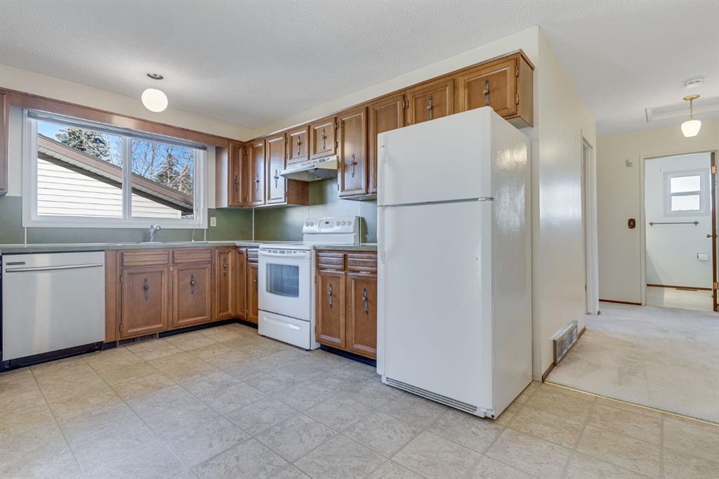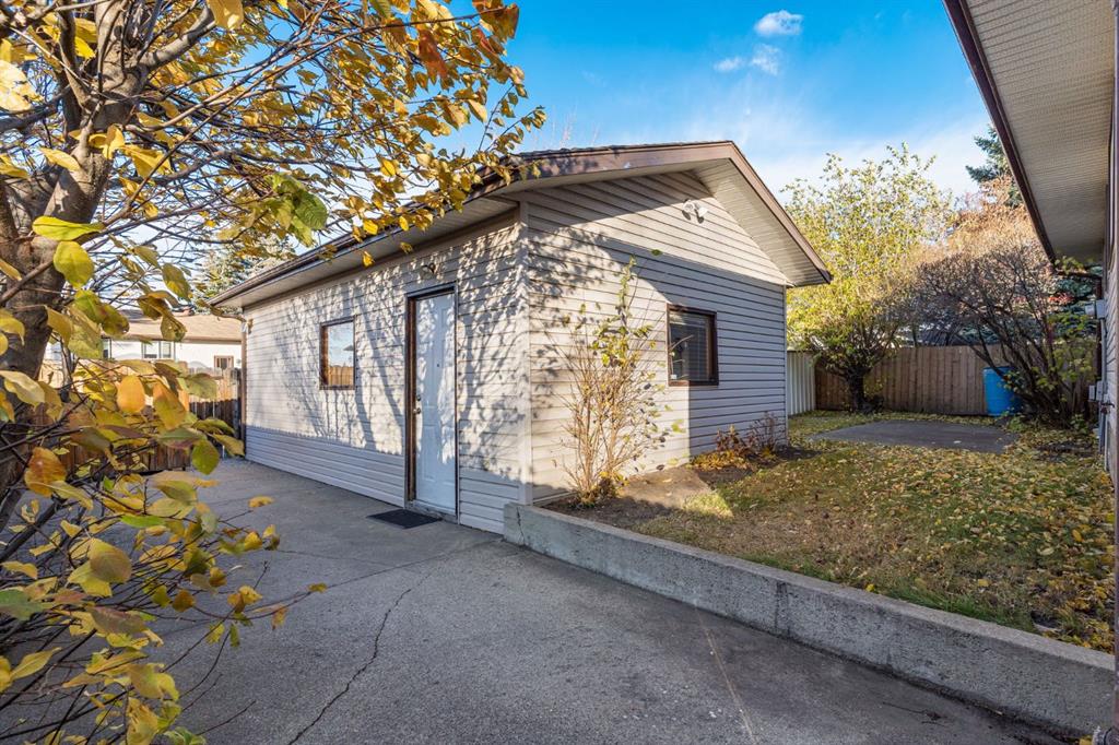This well maintained bungalow is situated on a large corner lot with mature trees on a very quiet street. Offering over 2,300 developed square feet, a single detached garage 16’x 24’, and an additional parking pad ideal for an RV or other vehicles. The main floor has a functional layout for comfortable living. As you enter you are welcomed by a spacious living room with big bay windows that draw in the natural light. This seamlessly connects to the large dining room and “L shaped” kitchen. Which offers plenty of storage with solid wood cabinets, a sink overlooking the backyard, and a breakfast nook. The primary is situated at the front of the home with its own 2 piece ensuite and dual closets! There are two additional well sized bedrooms and a 4 piece main bath. A side entrance off the kitchen leads to your large backyard and stairs to the basement. The lower level has an expansive rec room featuring a brick wood burning fireplace, a office space with built in desk, a convenient wet bar, and a 3 piece bath. This home is immaculate with almost all new windows, and a newer roof. The central location is ideal as you are close to major transit routes, the Ctrain station, walking distance to Dr. Gordon Higgins School, St. Rupert School, and plenty of amenities like Village Square Leisure Centre, the Public Library, Peter Lougheed Hospital and Sunridge mall. Schedule your private showing or view the virtual tour today!