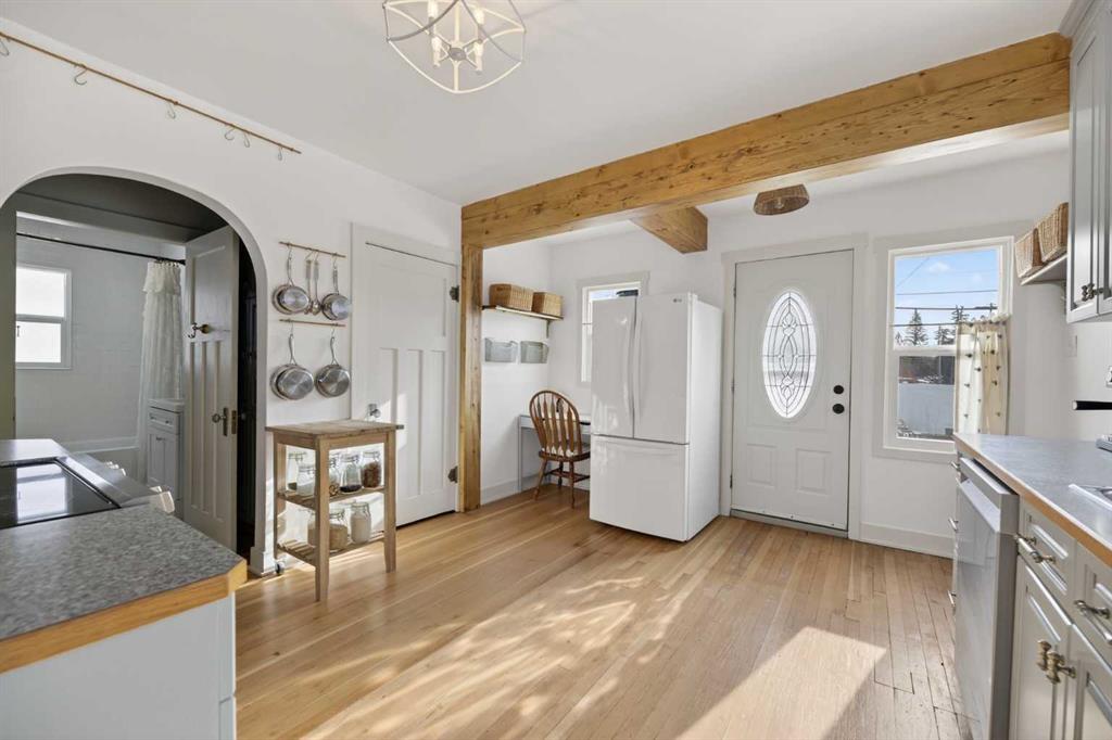 Here is your awesome opportunity to enter the market or expand your investment portfolio! Ideally located within walking distance to Olds College and set in a desirable, well-established neighbourhood, this beautifully upgraded home offers both comfort and long-term value. Extensively improved over the past three years, the home features a bright and welcoming interior filled with natural light from large south-facing windows. The main floor showcases refinished hardwood flooring and an expanded, refreshed kitchen complete with a new stove and dishwasher—perfect for both everyday living and entertaining. The bathroom has been tastefully updated with new flooring and a modern vanity, while updated lighting fixtures throughout most of the home add a fresh, contemporary feel. The spacious primary bedroom includes a generously sized closet for added convenience. Enjoy the inviting enclosed three-season front porch, complete with a cozy den area—an ideal space to relax and unwind. Outside, the PVC privacy fencing enhances both function and curb appeal. The basement offers abundant storage and includes a laundry area with sink, adding to the home’s practicality. With recent shingles (2024), new attic insulation, and thoughtful upgrades throughout, this sun-soaked property is move-in ready and a smart choice for homeowners and investors alike.