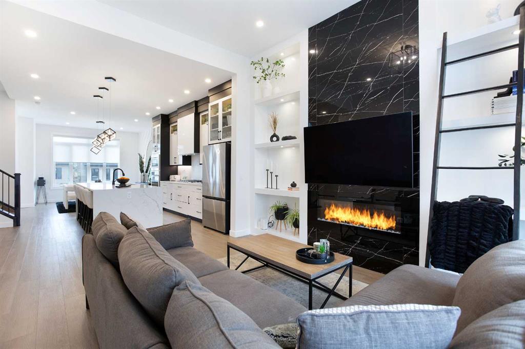 Welcome to this gorgeous luxury built home in Montgomery’s exclusive “Platinum Triangle!” Built by a small quality builder, the attention to details are evident throughout. Step inside and you’ll immediately appreciate the gorgeous vinyl plank flooring, OPEN FLOOR PLAN and large windows with a sunny south-west exposure – flooding the main level with natural light. The kitchen is a dream! It features quality built-in appliances as well as a gas cook top, plenty of stylish yet functional cabinets and a large central island. The SOARING 12 ft high, flat painted ceiling in the living room with a floor-to-ceiling fireplace feature wall and large windows is a beautiful space to host friends and family! Upstairs there are 3 generously sized bedrooms all with walk-in closets! The primary bedroom offers beautiful expansive views and has a spa-like 5-pc ensuite with dual sinks, a large walk-in shower and a free-standing tub all finished in a modern design with high quality materials. An additional 4-pc bathroom and an UPSTAIRS LAUNDRY ROOM with a sink complete this level. The FULLY FINISHED lower level has 9 ft ceilings, a wet bar and wine rack, a 4th bedroom, another 4-pc bathroom and a spacious recreation / family room. A SUMP PUMP has also been installed for additional peace of mind! The fully LANDSCAPED backyard features CONCRETE WALKWAYS and 6 tall Swedish columnar aspen trees and Japanese lilac trees that have been recently planted. A DOUBLE GARAGE ensures all your parking needs are met! Situated on a quiet street, this home is just a few steps away from the Shouldice park with several athletic fields including a soccer dome, the off-leash dog park, half a block from the Bow river with a bike path system directly to downtown and the K-6 Terrace School. The University of Calgary, two hospitals including the Alberta Children’s hospital, Market Mall and the Calgary Farmer’s Market are just a short drive away. Downtown Calgary is only a 10-12 minute drive and this home has easy access west to the mountains. With over 2,700 sq ft of fully developed space, this home is ideal for families, young professionals and investors alike. Call to book your private showing today!