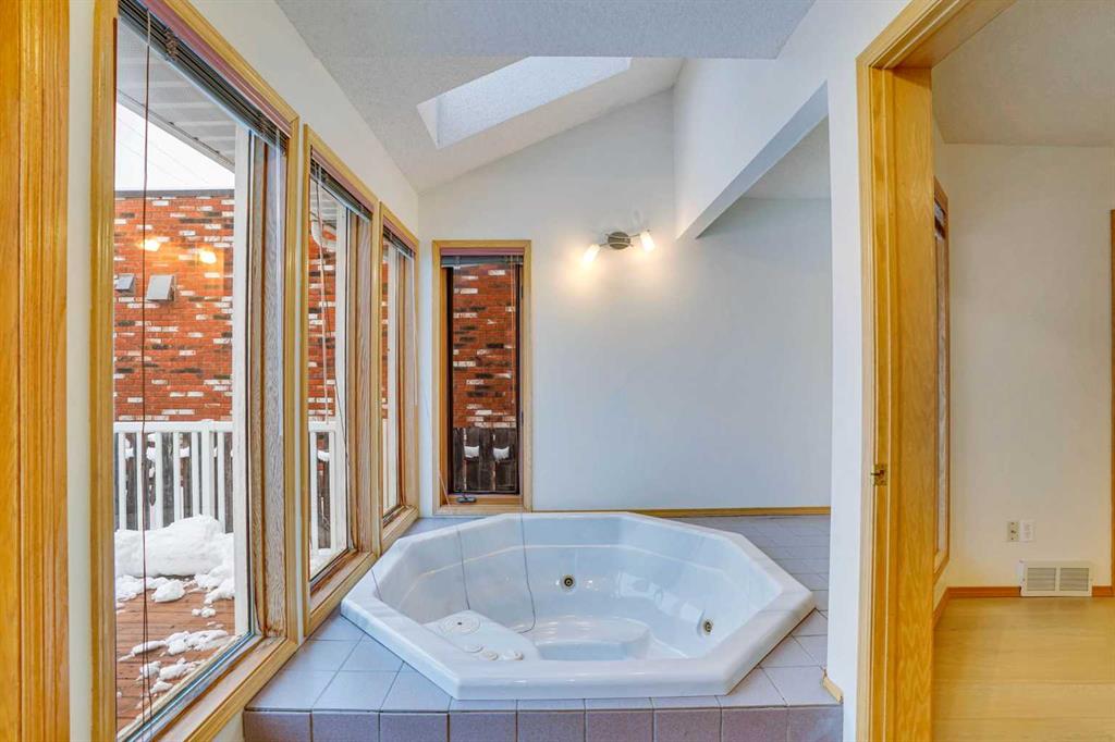 Step inside to a stunning entryway with soaring vaulted ceilings over 12 feet high. The main floor flows seamlessly into a bright living space and an updated kitchen complete with a central island, and newer cabinetry. The adjoining dining area is perfect for entertaining, and the main level is capped off with a luxurious 4-person jacuzzi.