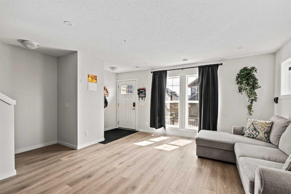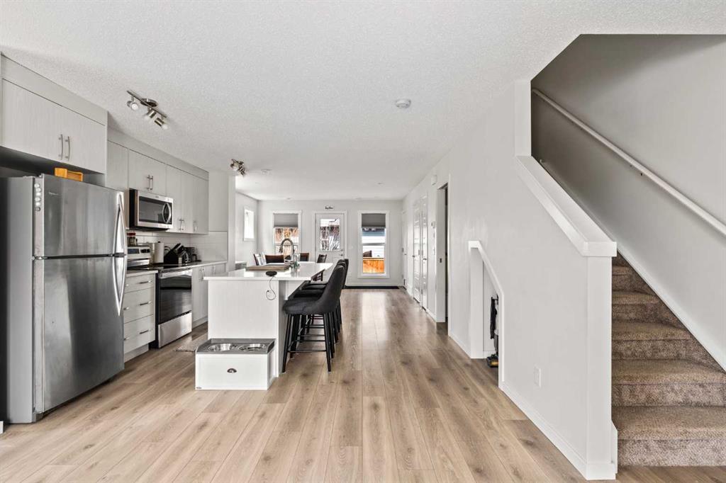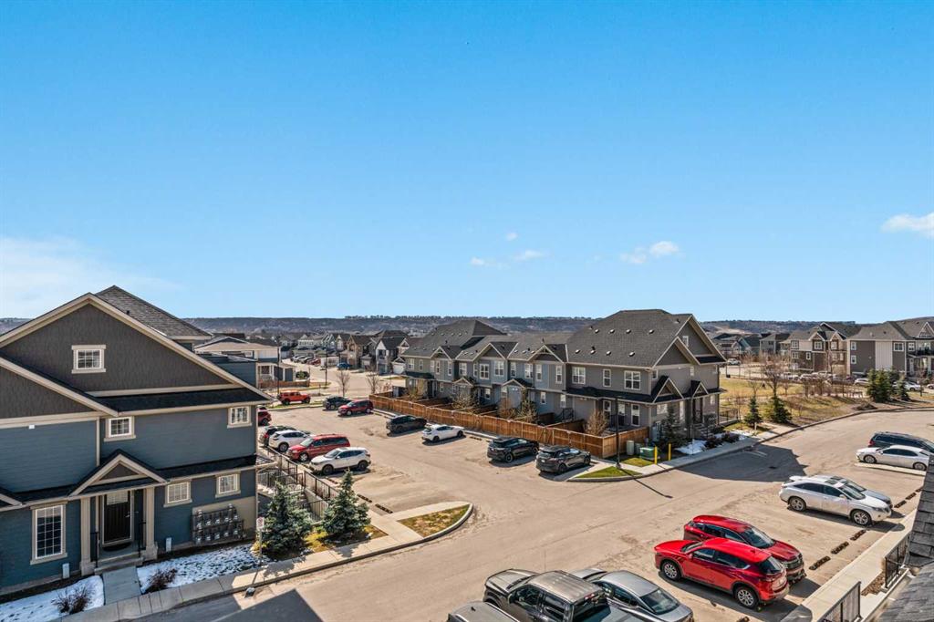 Come check out this end-unit 3 bedroom plus loft townhouse located in Cranston’s Riverstone, one of Calgary’s best neighbourhoods! As you enter, you’ll immediately notice the wide-open main floor providing plenty of extra space for living, cooking and dining. Stainless steel appliances and quartz countertops in the kitchen as well as light laminate floors and paint deliver a modern, yet warm feel. With this being a South West facing end-unit, loads of natural light fill the unit from 3 sides of windows rather than 2. The kitchen/dining area are perfect for entertaining, with a large kitchen island in the center of the home and a huge dining space that leads out to your very own fenced in backyard – perfect for hosting friends or for your own rest & relaxation. On the 2nd level, you’ll find 3 bedrooms and 2 full sized bathrooms. The Primary bedroom is large enough for your King Sized bed and includes a large walk-in closet as well as an en-suite bathroom, laundry is also located just outside the Primary bedroom. What makes this home unique, is the 3rd level loft space. Whether you make this into a movie room, gym, a kids play area or a home office, you will love this part of your home! Sliding patio doors lead to a top-floor balcony, with panoramic South West views. You will also have access to Century Hall, the Cranston residents association, with its gymnasium, banquet hall, outdoor rink, pleasure pond, toboggan hill, splash park, playground & skate park, tennis/pickleball courts & more! Just steps from your door, you’ll find playgrounds, parks and walking paths full of people enjoying the outdoors in all seasons. Come discover what makes Cranston one of the best communities in the city. It is more than a community, it is a lifestyle and it’s all waiting for you. Book your showing today!