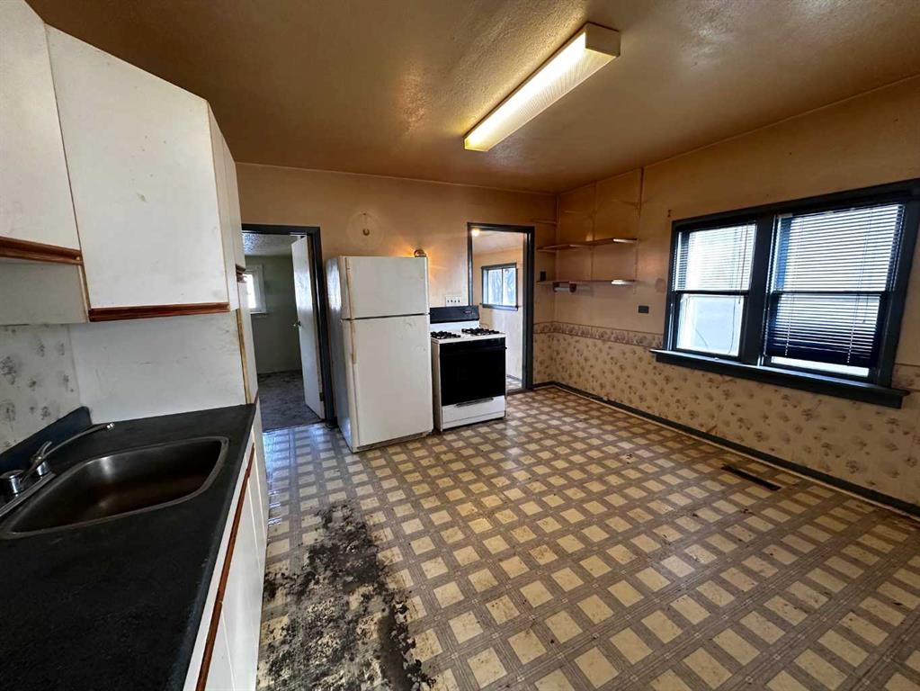 Great potential! One of the closest single-family homes to the Olds College campus. This 816 sq ft single-level bungalow sits on a quiet residential street in the heart of Olds, a growing town of about 9,200 people located exactly halfway between Calgary and Red Deer on the QEII. The home offers 2 bedrooms, 1 full bathroom, a single detached garage, newer shingles, and a large south-facing patio deck, with a good-sized yard with mature trees and plenty of room for relaxing. The property will require updates/repairs inside, making it ideal for contractors, flippers, handyman buyers, or investors looking for Olds College rental potential. With strong enrollment at the college, consistent demand for affordable housing, and Olds’ ongoing growth as a trade/agriculture/education hub, this location rarely comes available.