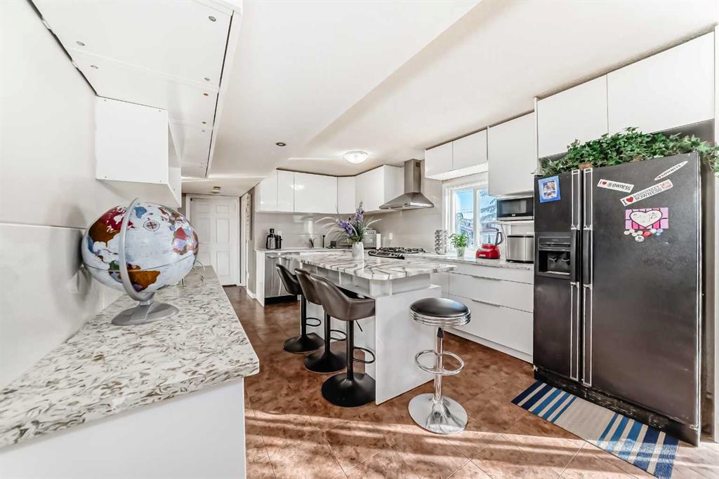 Welcome to West Bowness , rare to find large 2 -storey home situated on a massive 50×124 ft size lot with over 2150 Sq/ft of total living space. Nestled on a quiet street in the heart of West Bowness, this spacious and versatile property presents a rare opportunity for both large families and savvy investors. The home boasts a charming stucco exterior, four entrances and offers beautiful views of Canada Olympic Park (especially during the skiing season). The main floor has a large entrance with an exterior front porch (2015). Step inside and be greeted by a bright, spacious main floor bathed in natural light from west and south facing windows. The updated kitchen (2018) is a true chef’s dream, featuring granite countertops, vinyl flooring, a gas range, a large pantry, and new white cabinets + SS appliances. This area flows seamlessly into the main living spaces with updated laminate flooring, providing plenty of room for family gatherings and entertaining. For ultimate convenience, the main floor also includes a full bathroom and laundry facilities (2015). Off the kitchen you have access to a large deck with full exposure to the huge backyard. This home is perfect for a growing family, offering four large bedrooms on the upper level. The generous primary bedroom is a standout, providing a secluded retreat with its own separate second-floor staircase and a massive walk-in closet. Beyond the main living area, the property offers fantastic income potential with an illegal bachelor suite built in 2015. Featuring its own separate side entrance and sidewalk, kitchenette, 4-piece bathroom, and a laundry connection, along with an egress window and new tile flooring. This illegal suite is ideal for extended family or a significant mortgage helper. The huge, private, and fenced yard is an oasis featuring fruit trees and a playground area, while a large front concrete pad leads conveniently to the back. Enjoy your morning coffee on the covered front porch or host a summer BBQ on the rear deck off the kitchen. The Property also includes an oversized (24×24) double garage, perfect for storage and parking. The location can’t be beat! You’re just steps away from nature with Bowness Park, Canada Olympic Park, Winsport and the home offers incredible access to community amenities all within walking distance to elementary & high schools, transit, and just a few minutes’ drive to shopping centres, new Calgary Farmers market, Foothills & Children’s Hospitals, University of Calgary (UofC), Bowness library & eateries and major thoroughfares like Stoney Trail, TransCanada highway to the mountains, and city pathways leading straight to downtown. This is a superb opportunity to own a spacious home with modern updates, incredible appeal, and income potential in a friendly, sought-after neighbourhood. The possibilities are truly endless, whether you’re looking for a perfect family home, a rental property, or a fantastic property to hold. Book your showing today!
