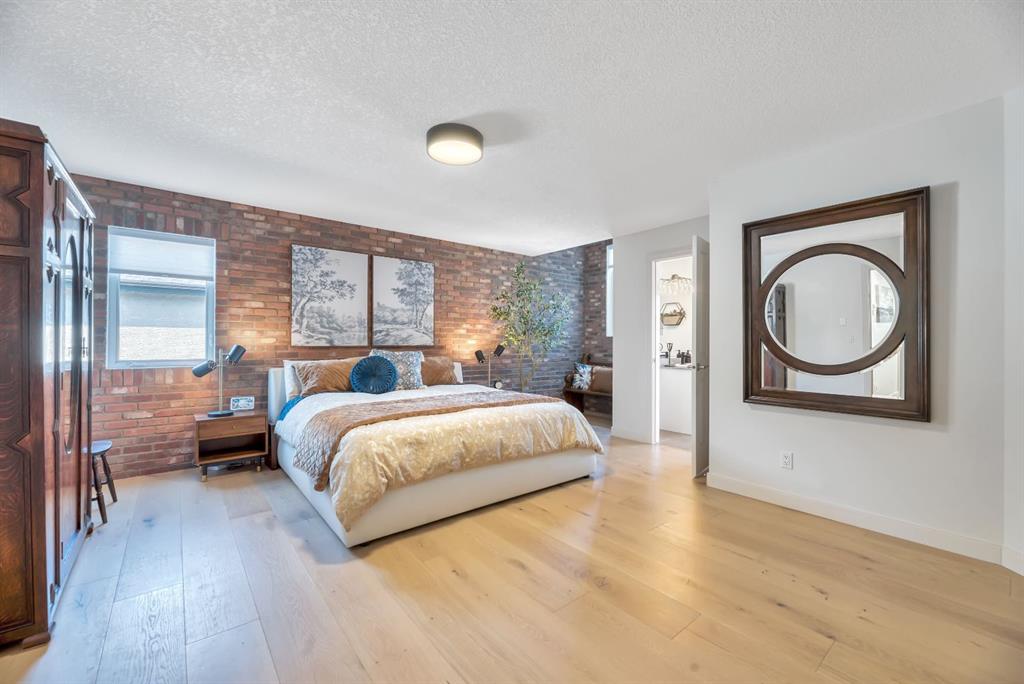 Upstairs, you’ll find two spacious bedrooms, a full bath, and a massive primary oasis highlighted by a brick feature wall – industrial yet warm and an enclave vaulted dormer. The luxurious ensuite offers a spa-like experience with dual vanities, soaker tub, oversized shower, and a 21’ long walk-in closet with another vaulted dormer. There is definitely not a lack of storage in this home!