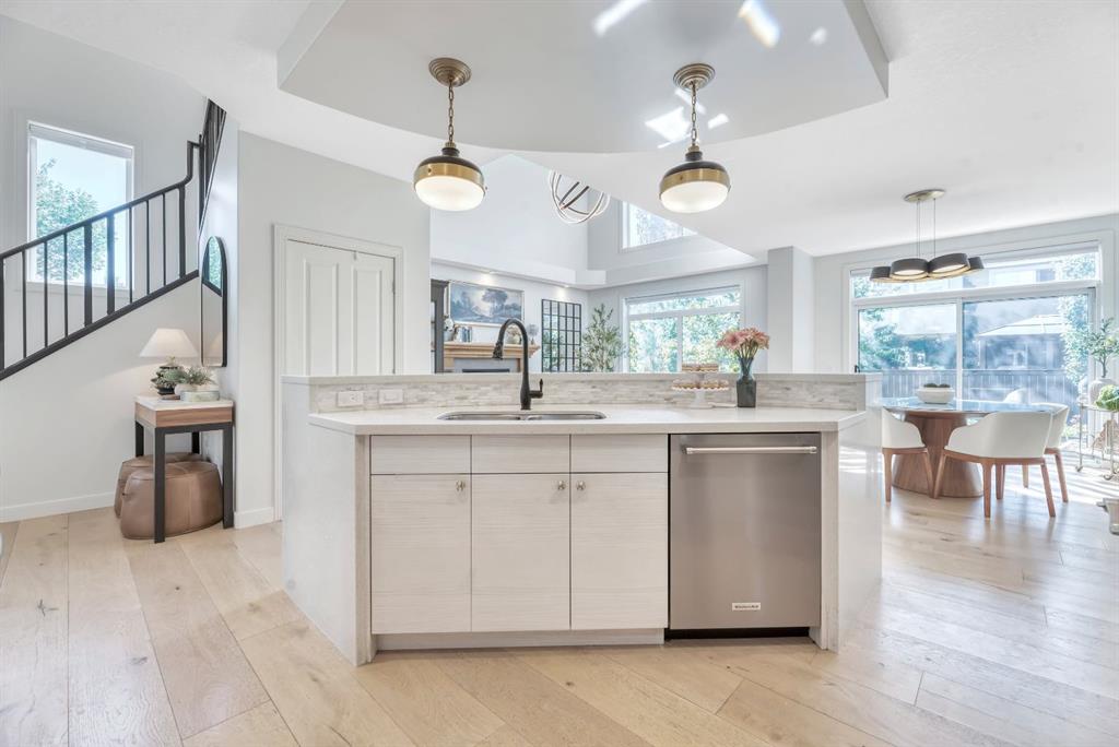 Outside, the backyard is a private oasis with lush landscaping, mature trees, and access to nearby walking paths and parks. On the side of the house there is a beautiful courtyard type space to enjoy the sun rise and watch your kids play in the park next to your home. With its prime location, functional design, and high-end renovations, this home delivers the perfect balance of elegance, style and comfort in one of Calgary’s most sought-after communities.