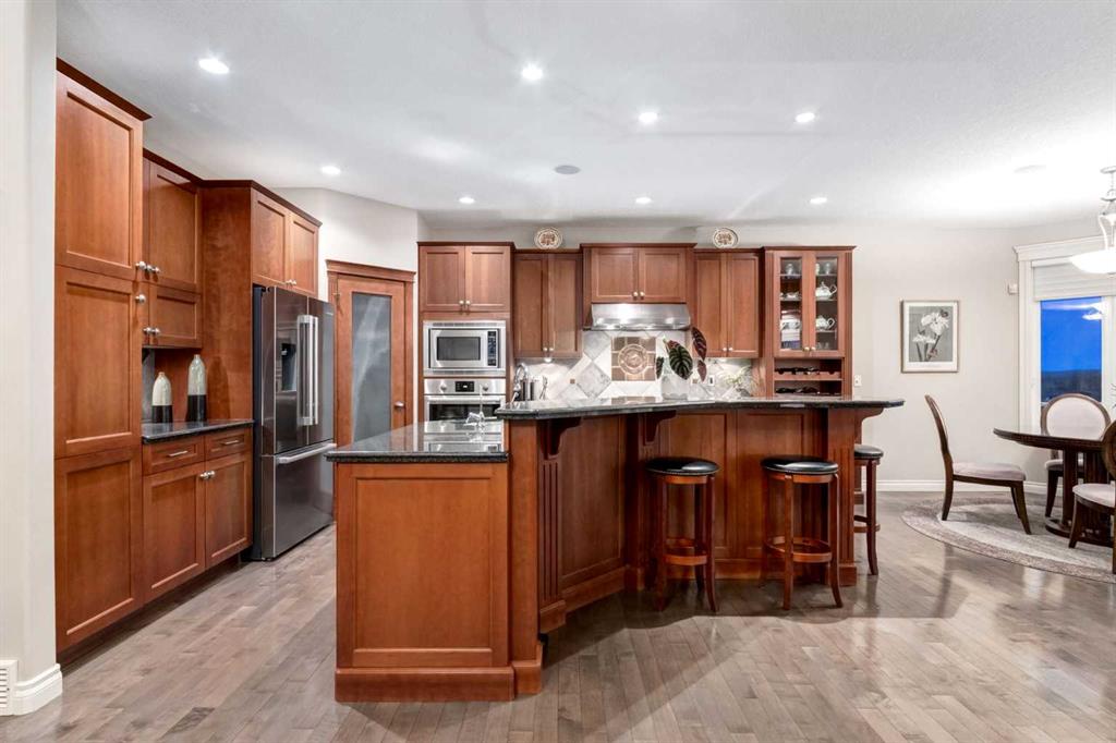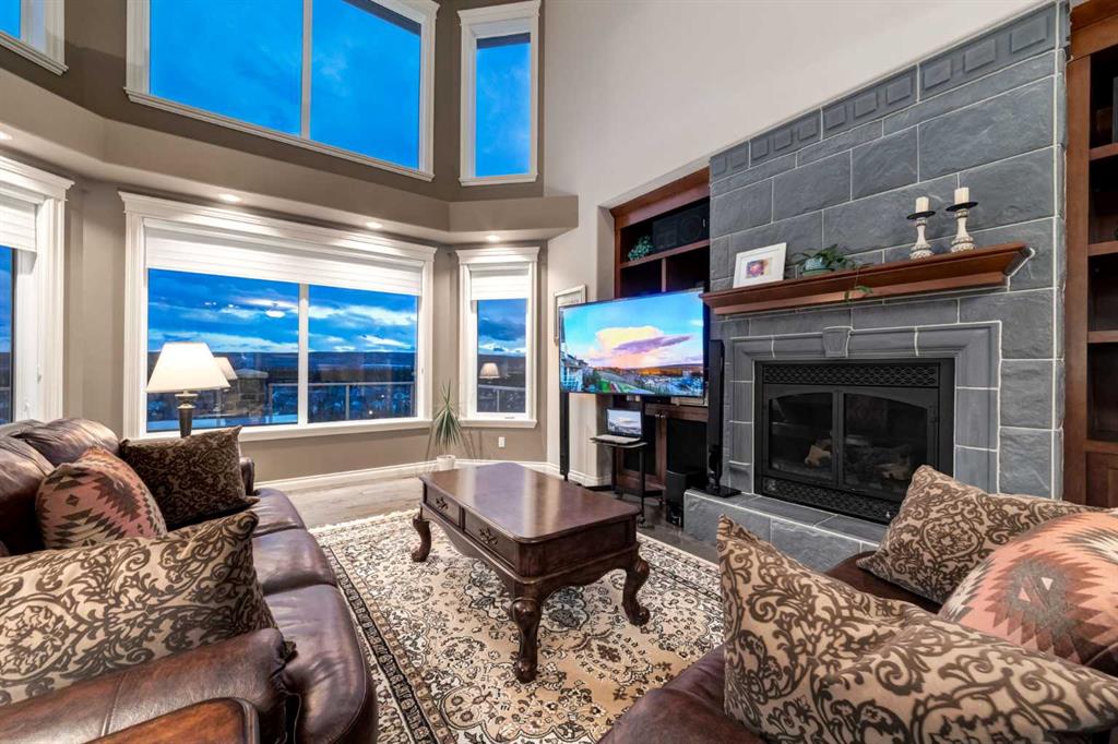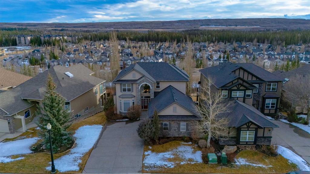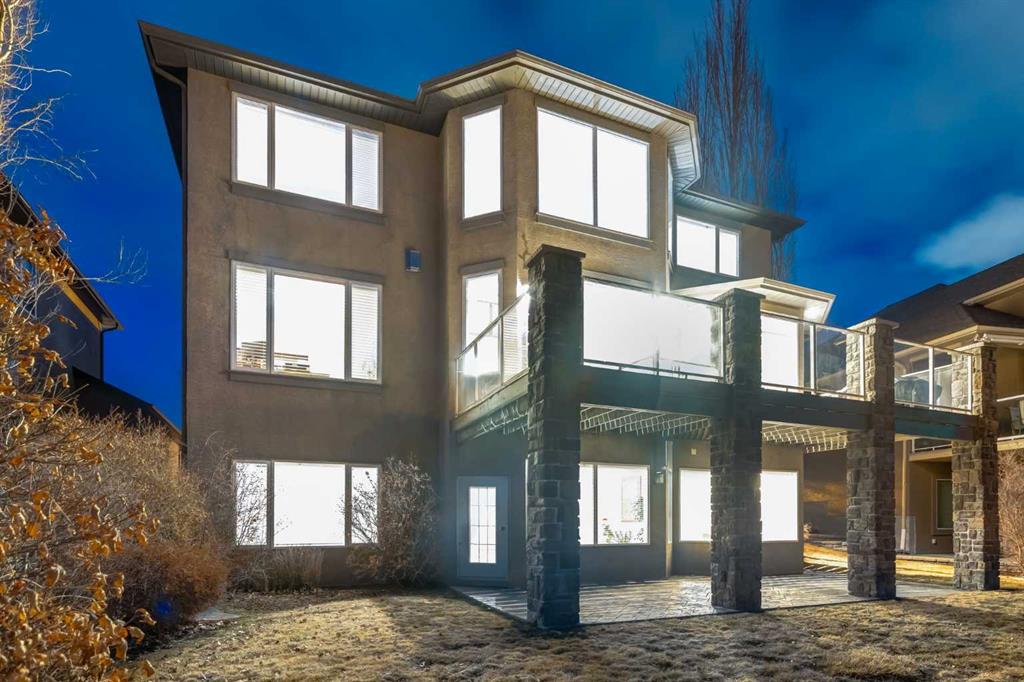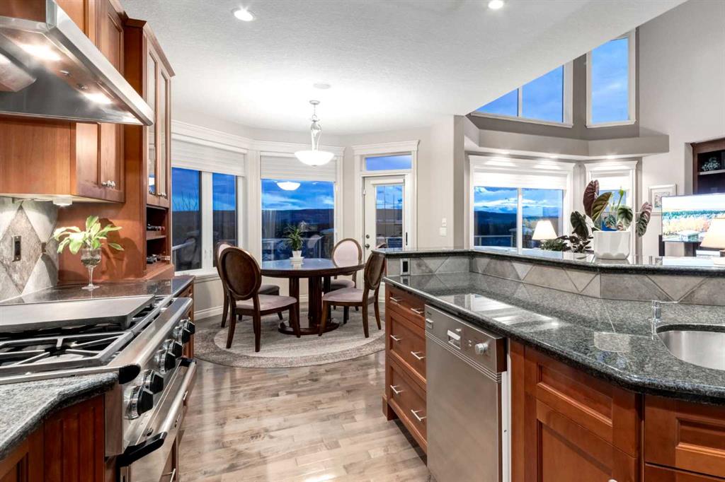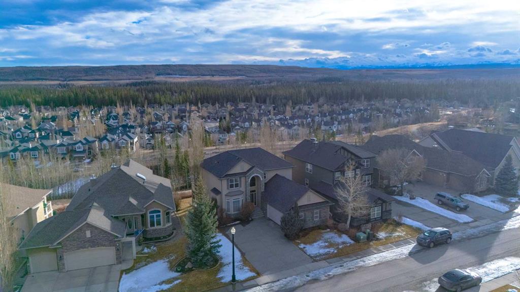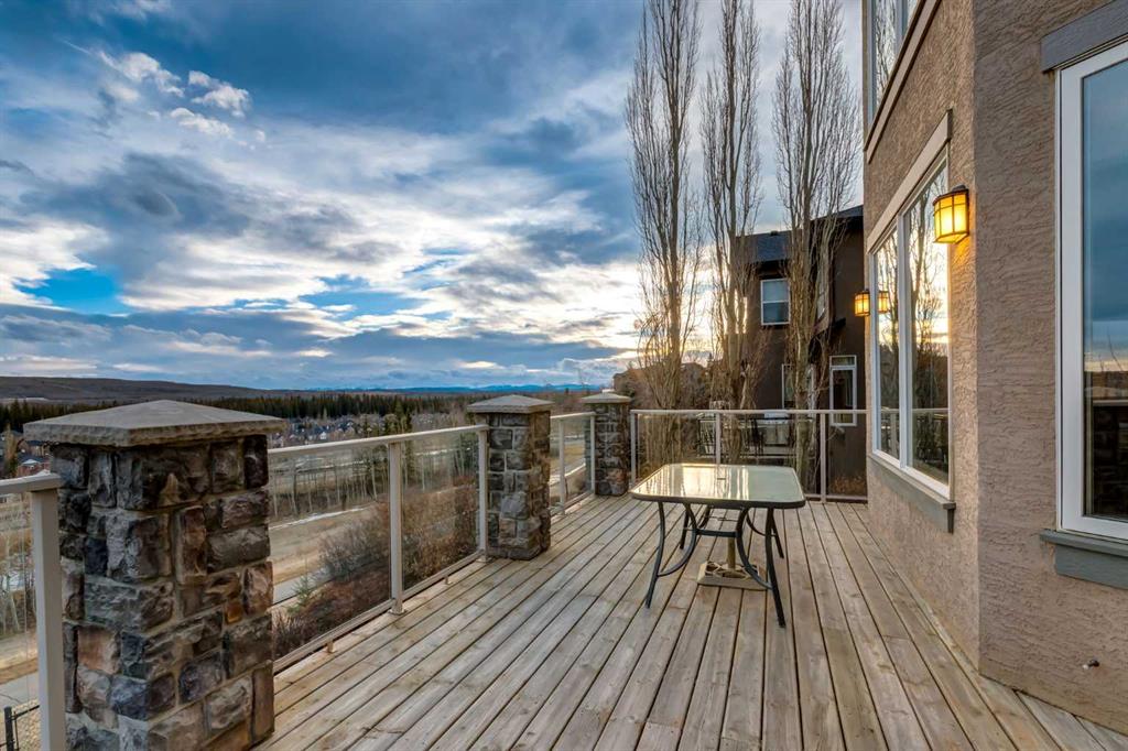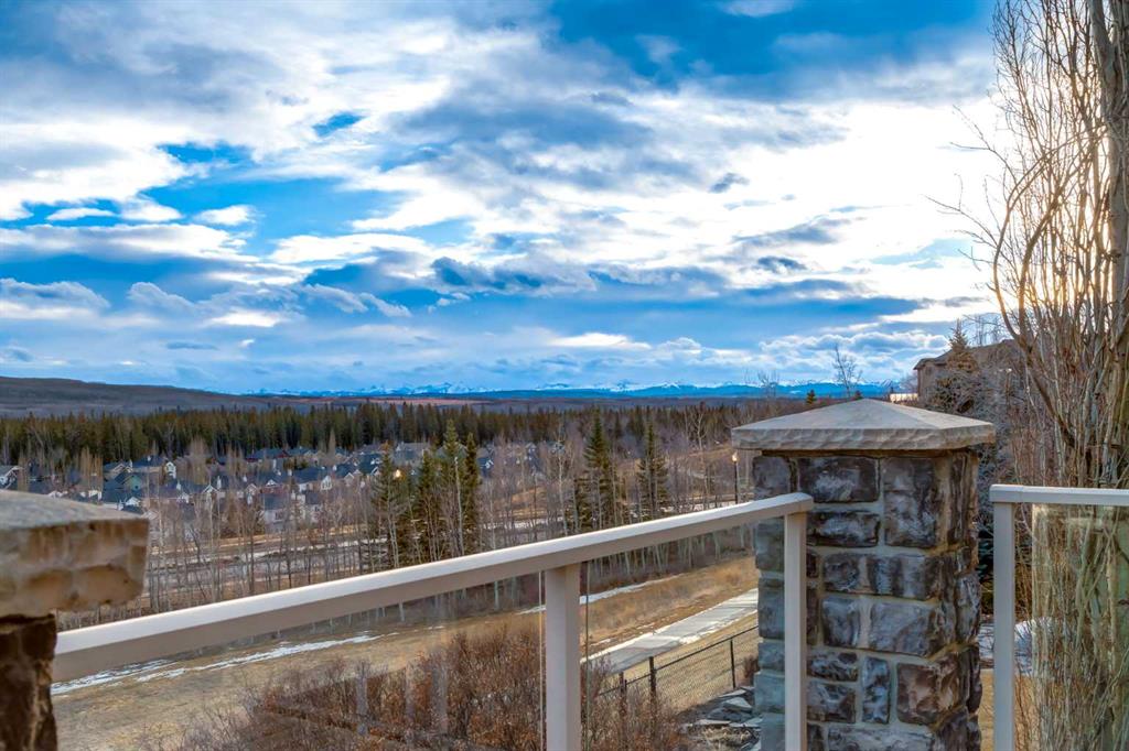 Open House 4-6PM, Friday, March 20 & Noon to 2PM, Saturday March 21 & 2-4PM, Sunday, March 22, 2026. Stunning upscale Morrison-built two storey with panoramic 180 degree views of the Elbow Value, Griffith Woods and the mountains! Grand foyer with rich solid maple and glass front doors, maple hardwood floors, surround sound, knockdown stipple and rounded corners, dream kitchen with restaurant-quality steel appliancesfeaturing 6-burner gas cooktop, convection wall oven with warming oven, upgraded plumbing fixtures and granite countertops, great room features oversized gas fireplace, floor-to-ceiling Low E windows and custom bookcases, wrought iron rails, upgraded lighting, lavish Jacuzzi ensuite, walkout basement. Professionally landscaped with retaining wall, stamped concrete patio and more. Quality show home-like features and views from all 3 levels.