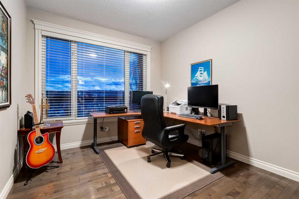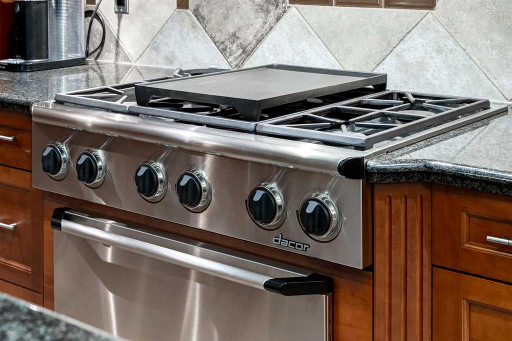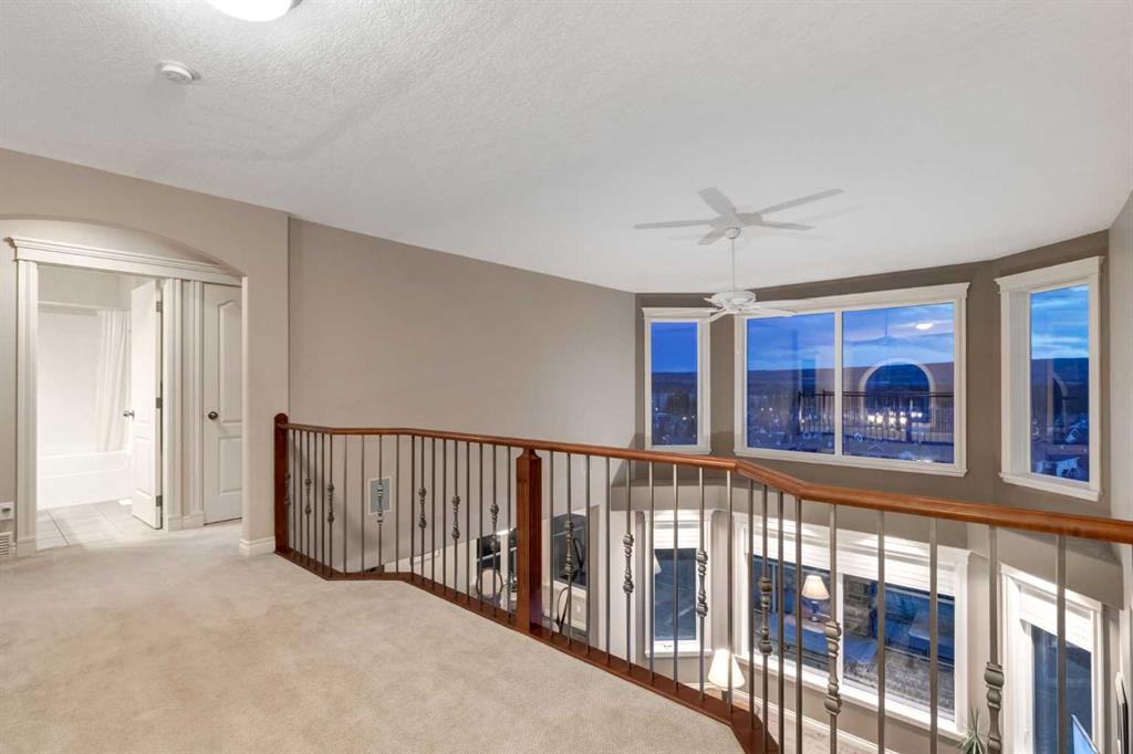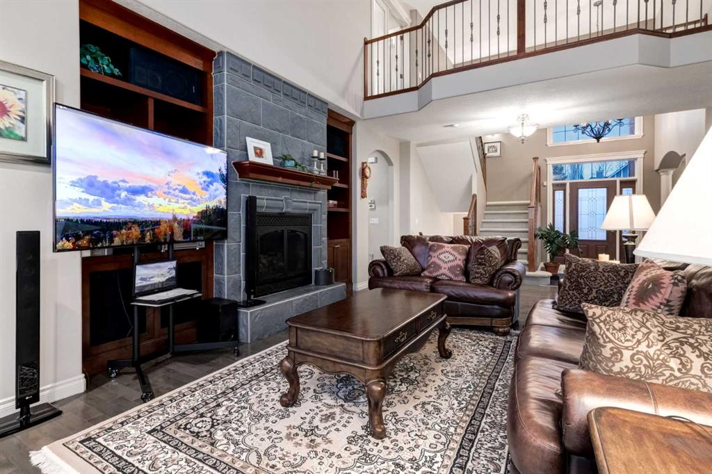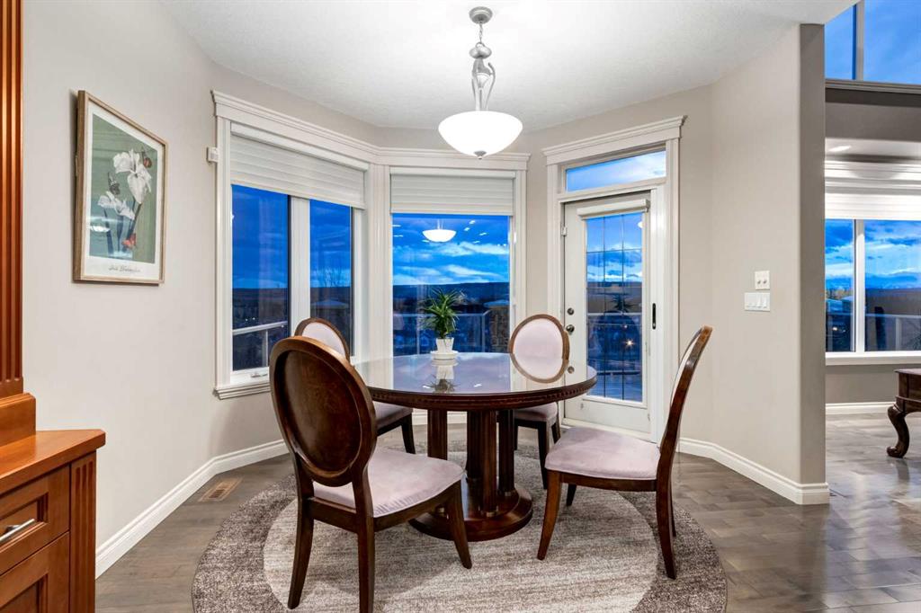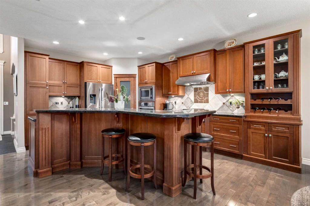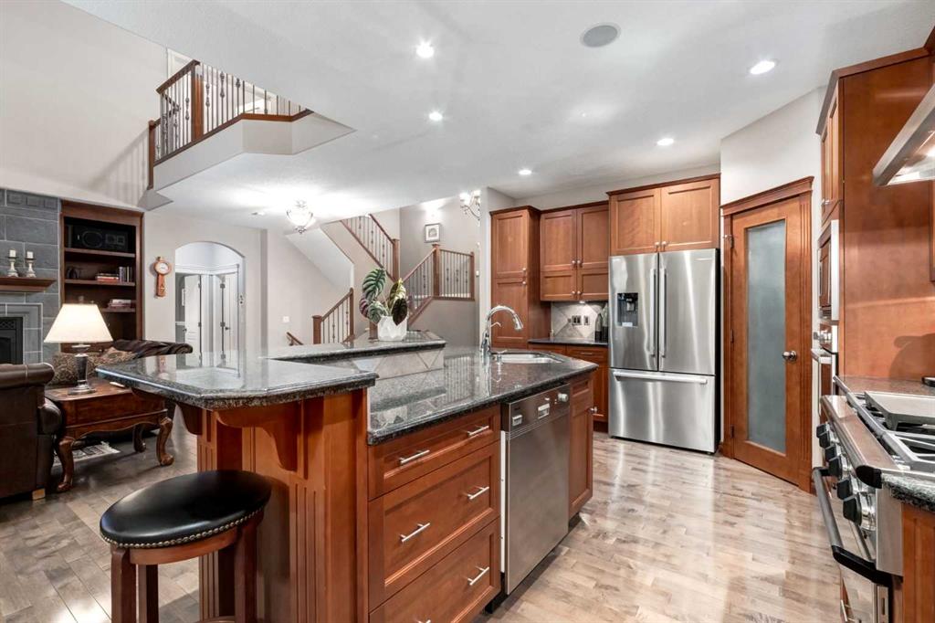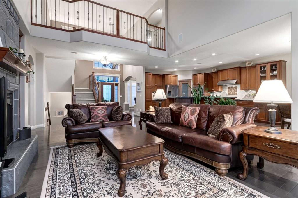 Open House 4-6PM, Friday, March 20 & Noon to 2PM, Saturday March 21 & 2-4PM, Sunday, March 22, 2026. Stunning upscale Morrison-built two storey with panoramic 180 degree views of the Elbow Value, Griffith Woods and the mountains! Grand foyer with rich solid maple and glass front doors, maple hardwood floors, surround sound, knockdown stipple and rounded corners, dream kitchen with restaurant-quality steel appliancesfeaturing 6-burner gas cooktop, convection wall oven with warming oven, upgraded plumbing fixtures and granite countertops, great room features oversized gas fireplace, floor-to-ceiling Low E windows and custom bookcases, wrought iron rails, upgraded lighting, lavish Jacuzzi ensuite, walkout basement. Professionally landscaped with retaining wall, stamped concrete patio and more. Quality show home-like features and views from all 3 levels.