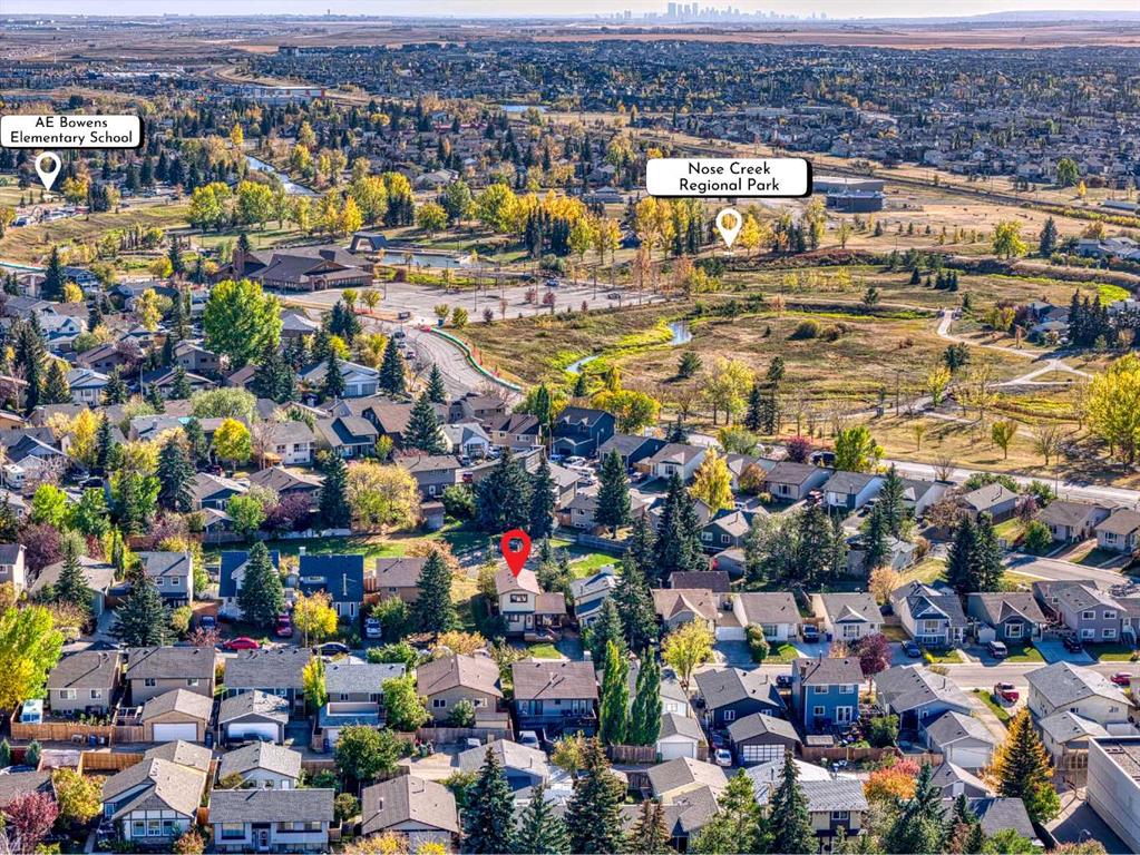 Just steps away, Nose Creek Regional Park stretches out with over twenty acres of trails, picnic areas, and open space to explore. In winter, it transforms with maintained skating areas, snow-dusted walking paths, and nearby sledding hills — a true four-season escape for families, pets, and anyone who loves the outdoors.