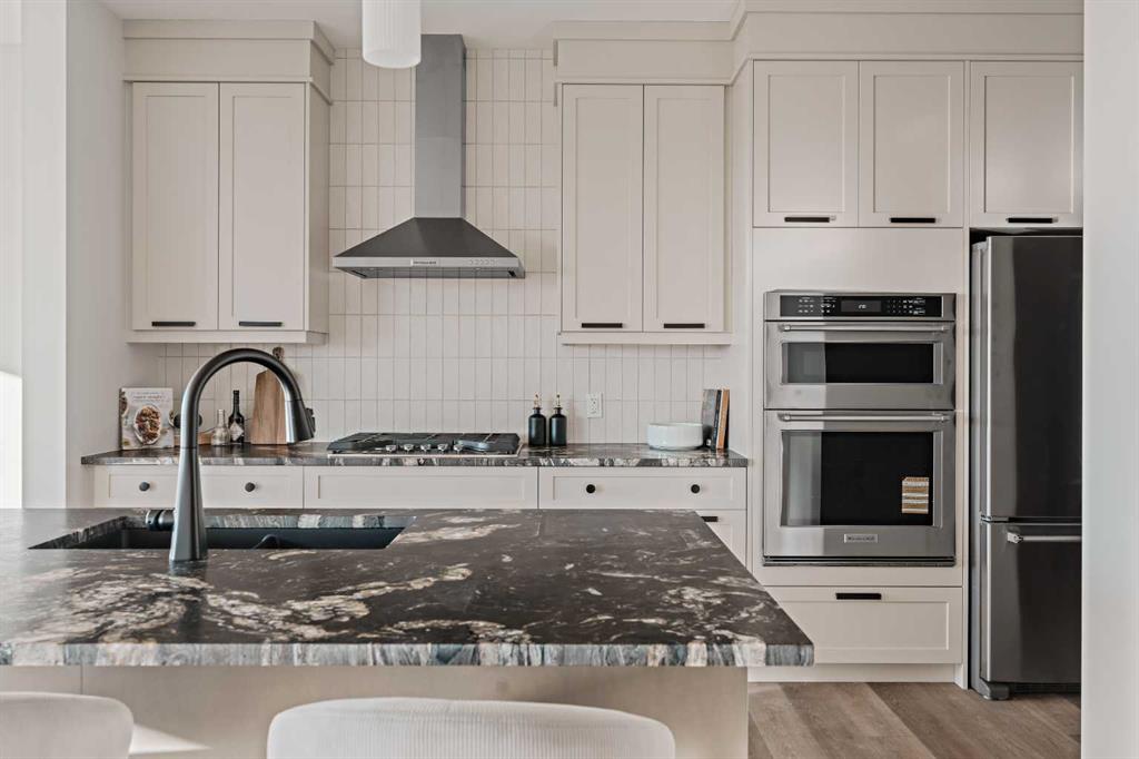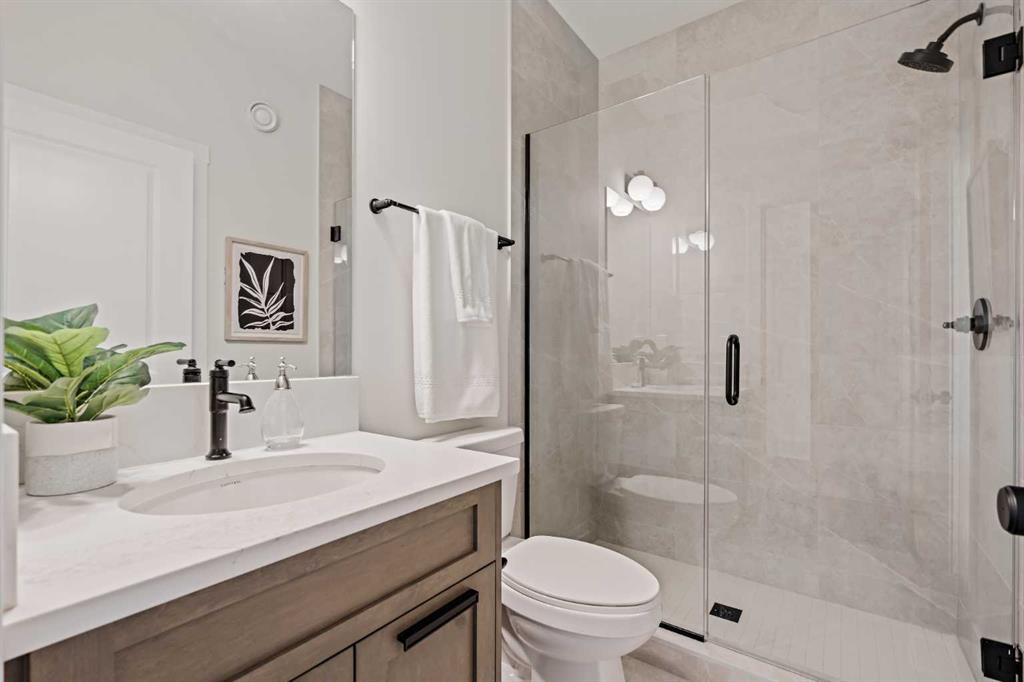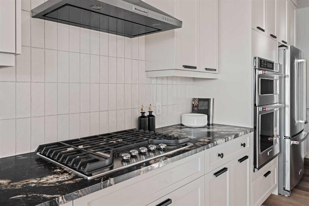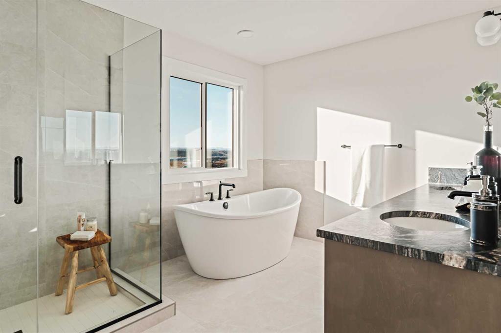 Welcome to the brand-new Accadia by Brookfield Residential, a thoughtfully designed home that blends modern luxury with functional living. Featuring 7 bedrooms and 5 bathrooms, including a legal 2 bedroom suite, this home is perfect for a large family, multi-generational living, or investors that want exceptional value today with incredible resale value long term in this versatile plan that provides endless opportunities. Perfectly situated on a 36′ wide traditional lot with a 28’ wide home, this striking residence offers a seamless combination of style and comfort for today’s lifestyle. Elevated interior design carries throughout this stunning entire estate home, providing a timeless space where you’ll not only be proud to live but excited to host and entertain. Step inside and be greeted by a bright, open-concept layout featuring 9’ ceilings throughout the main level, designed to maximize space and natural light. The main floor boasts a gourmet kitchen complete with under-cabinet lighting, built-in appliances including a gas cooktop, a full butler’s pantry, and high-end finishes including two tone cabinetry with leather finish granite – all designed to make cooking and entertaining effortless. Adjacent to the kitchen, enjoy a spacious dining area with patio doors leading to the rear deck and expansive backyard. The dining space opens to the main living area which has a central fireplace with a beautiful arched surround. A wall of windows across the back of the home capitalize on the southwest backyard exposure – maximizing natural light all year long. Convenience and flexibility are at the heart of this home with a main-floor bedroom with full bathroom that features a tiled shower with 10mm glass, making it ideal for guests or multi-generational living. Natural wood & iron spindle railing lead to the upper level where you’re greeted by an expansive central bonus room that separates the primary suite from the other three bedrooms – adding privacy & everyday functionality. The main primary suite spans the entire width of the home and overlooks the backyard, complete with a spa-like 5 pc ensuite with an oversized tiled shower with 10mm glass, soaker tub, tile wainscotting, dual vanity, private water closet & a sprawling walk-in closet. The upper level is complete with a second primary suite complete with its own full ensuite and walk-in closet. The upper level is rounded out with two more bedrooms (4 total), a 5pc main bathroom, laundry room and linen closet. The lower level offers a spacious 2 bedroom legal suite complete with a full kitchen, dining area, living room, bathroom and laundry – all accessed by its own private entry! Lastly, enjoy an oversized double attached garage and optimal sunshine in the private southwest-facing backyard. With both builder’s warranty and Alberta New Home Warranty, enjoy complete peace of mind with your purchase. Discover the perfect blend of style, comfort, and functionality in this remarkable Brookfield Residential creation.