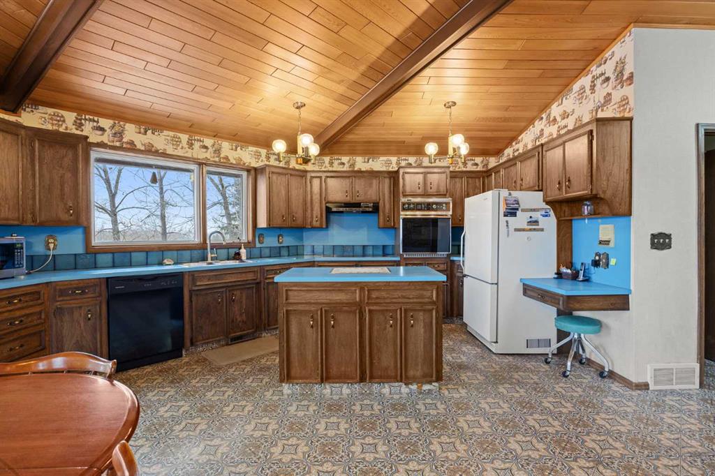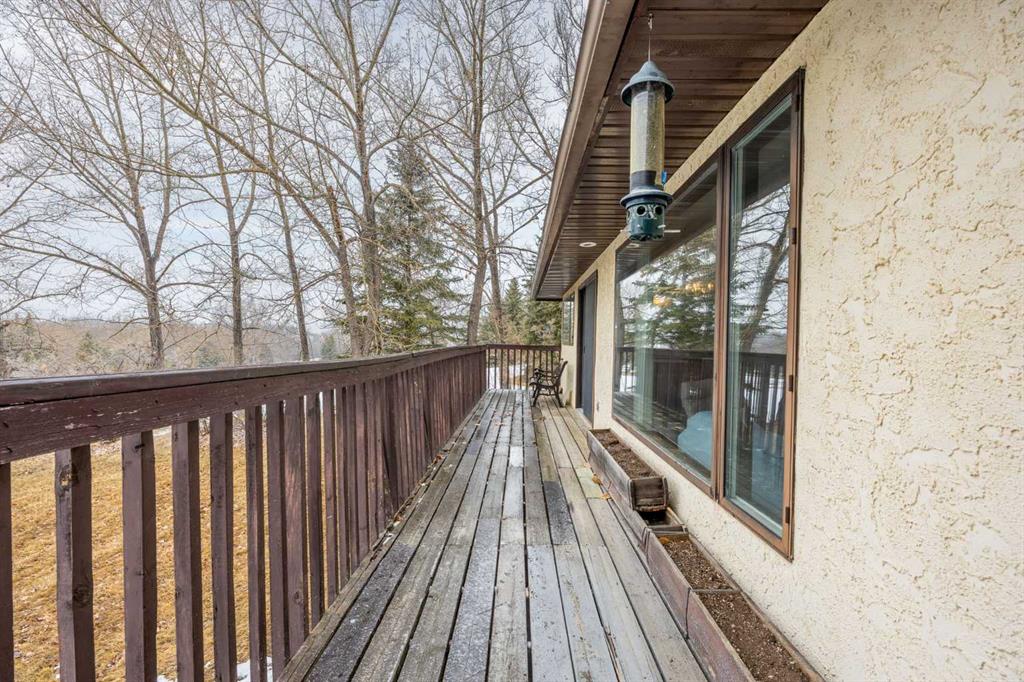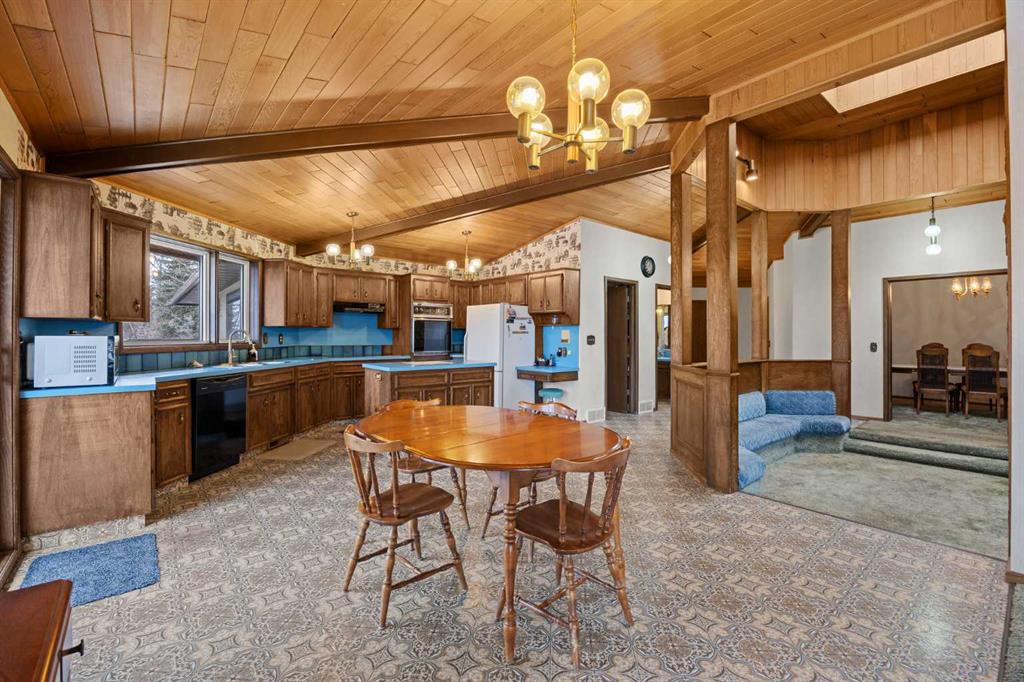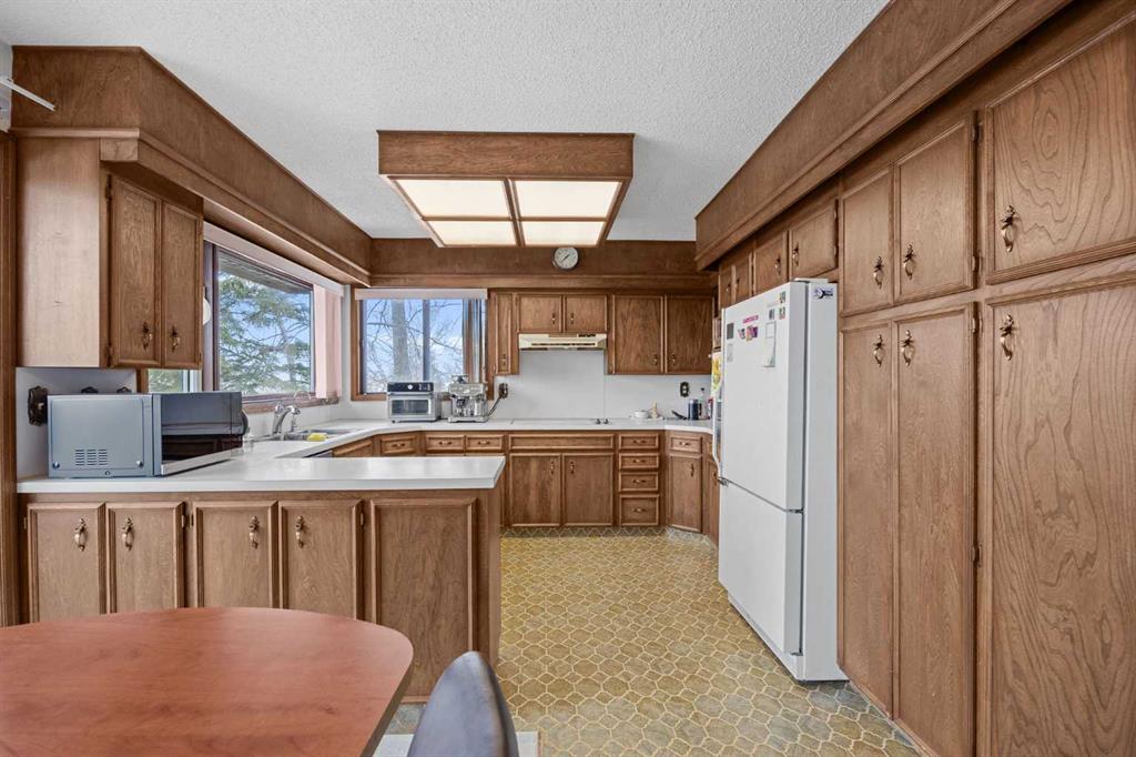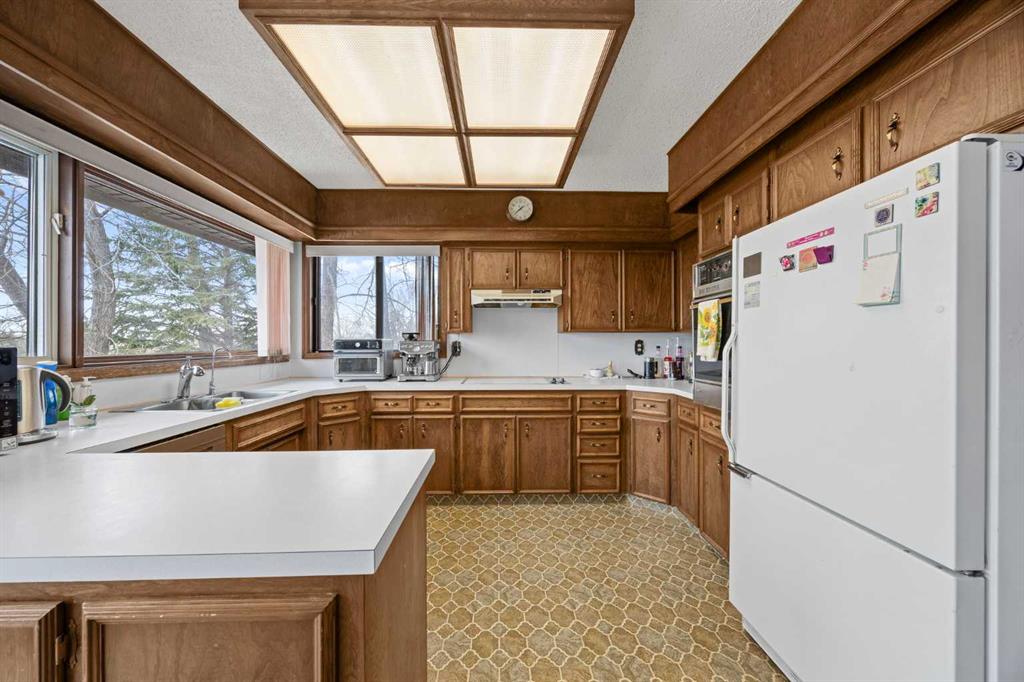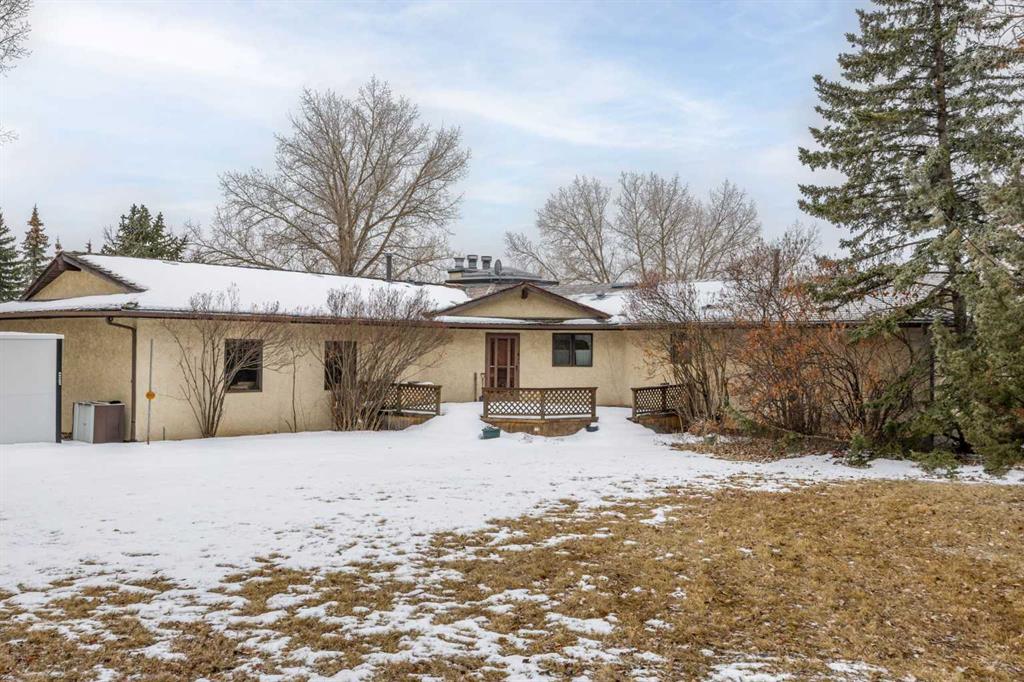 **OPEN HOUSE – SATURDAY 11-1pm** Perfectly positioned on one of Central Springbank’s most desirable streets, this property is offered for sale for the first time. Set on 2.13 hillside acres, it offers expansive west-facing views of the Rocky Mountain range, stunning sunsets, and starry skies at night. The home itself is suited for either a Buyer looking to undertake a renovation that can marry its unique and functional design, or a Buyer seeking a mature build site for a new custom home. This walkout bungalow offers over 3,450 square feet above grade, over 3,350 additional square feet in the walkout lower level, and an oversized 3-car attached garage of over 900 square feet, complete with a suspended gas heater. The main home features 6 bedrooms, 2 full bathrooms, and a powder room, with the upper level offering 3 bedrooms, a formal dining room, kitchen, and living room all anchored around a conversation pit with natural-stone fireplace. The lower level of the main home includes 3 additional bedrooms, a full bathroom, rec space, and more. The private north-wing in-law/nanny suite offers excellent flexibility for multigenerational living, with 1 bedroom and 1 full bathroom above grade, plus 2 additional bedrooms and 1 full bathroom on the lower level. Three of the home’s four wood-burning fireplaces feature natural stone and gas assist. Listed at land value, this is a rare opportunity to buy in Central Springbank where you are only 5 minutes to Calgary’s westside amenities, the Ring Road, and schools, or 45 minutes to Canmore. It is extremely rare to find a property like this with no main-road noise exposure, on a no-through street, with trees, privacy, and mountain views.