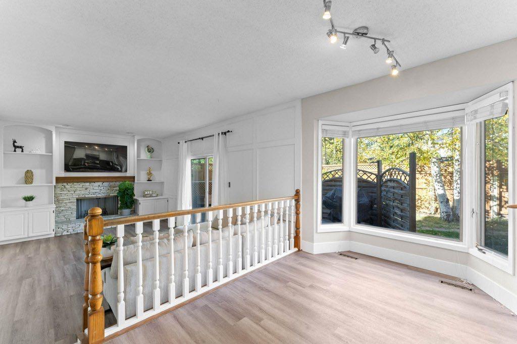 Ideally located just minutes from Fish Creek Park, top-rated schools, playgrounds, shopping, golf, and major routes like Stoney Trail and Anderson Road, this stunning home is perfect for a growing family. Pride of ownership is evident throughout, with thoughtful upgrades and a functional layout designed for everyday living and entertaining. Step inside to discover a bright and inviting main level featuring a spacious front living room with oversized picture windows, a formal dining area, and a chef-inspired kitchen complete with stainless steel appliances, breakfast nook, and access to the rear deck. Just off the kitchen, the cozy sunken living room offers a stone-faced fireplace, custom built-in shelving, and beautiful accent walls. A great size office room for your daily work. A renovated 2-piece bathroom and a custom laundry room with side-door access complete the main floor, along with entry to the attached double garage.