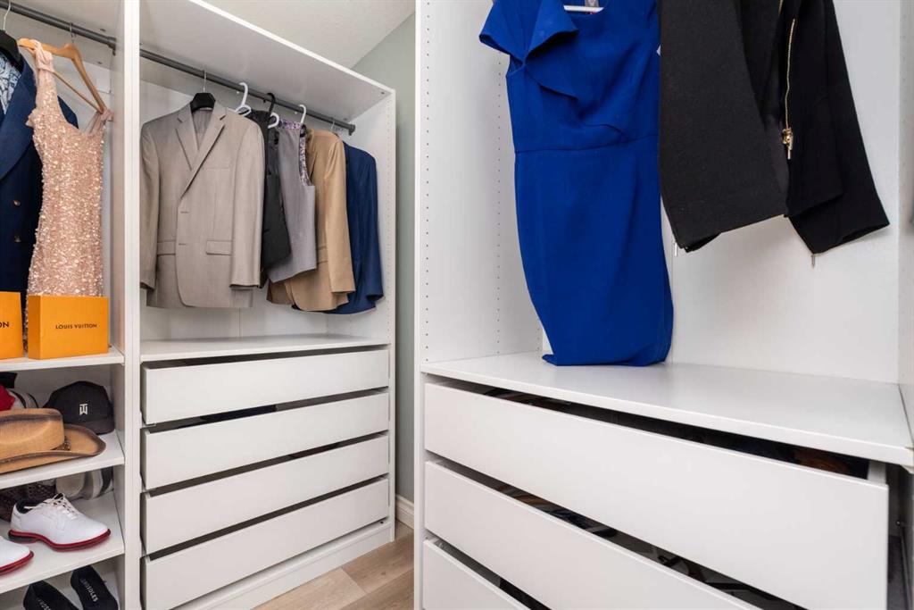 Upstairs, you’ll find three generous bedrooms finished in luxury vinyl plank flooring, including a bright primary suite featuring built-in closet system and a private ensuite. A full main bath, upper-level laundry with new washer and dryer, and a large linen closet offer added functionality for busy lifestyles.