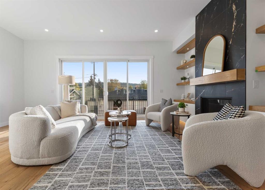 This BRAND NEW, MOVE-IN READY infill in MONTGOMERY checks all the boxes for stylish, functional inner-city living—with the added bonus of a fully private 1-BED WALKOUT SUITE (approved with permits and subject to final inspection). Whether you’re looking for extra income, space for guests, or a little more flexibility in your day-to-day, this one delivers. Step inside to a bright, welcoming foyer with a full coat closet—simple, clean, and easy to come home to. At the front of the home, the dining area offers space for a full-size table and flows naturally into the heart of the home: the kitchen. The kitchen brings a timeless feel with classic SHAKER-STYLE CABINETS, a custom-built hood fan with oak accents, glass display shelves with LED lighting, and a quartz-topped island with waterfall edges. You’ll also find an upgraded KITCHENAID APPLIANCE PACKAGE, including a gas range with pot filler and a large KitchenAid French door fridge. There’s also a convenient coffee or beverage station, complete with room for a beverage fridge. The living room is warm and elevated, featuring an INSET GAS FIREPLACE with full-height tile surround and built-in display shelving with closed cabinetry for extra storage. Natural light pours in through large rear sliders, leading out to the sunny SOUTHWEST-facing back deck with privacy screens already installed. Off the rear entry, the mudroom includes built-in shelving, a bench, and cubbies, with access to the powder room—private, polished, and finished with a skirted quartz counter and decorative framed mirror. Upstairs, the primary suite is a calm retreat with a tray ceiling, spacious walk-in closet, and a stunning ensuite that includes a freestanding soaker tub, walk-in shower with DUAL RAIN HEADS, and double vanity. Two more bedrooms, a full bath with attractive STACKED HORIZONTAL TILE, and a laundry room with designer tile flooring complete the upper level. Downstairs, the WALKOUT SUITE (approved, subject to final inspection) is bright, smartly designed, and full of quality finishes. The living room has a BUILT-IN FLOATING MEDIA CENTRE, and the full kitchen mirrors the same modern style as upstairs, with warm oak flat panel cabinetry and quartz countertop. There’s a full bathroom, stacked laundry, and a large bedroom with walk-in closet—plus its own separate entry for total independence. Set just off Home Road, this location offers easy access to main routes like 16th Ave and Memorial Drive while keeping you steps from nature. Walk to Shouldice Park, Bowmont Park, and the Bow River Pathway system for daily runs, dog walks, or weekend bike rides. You’re minutes from Montalcino Ristorante, NOtaBLE, and lots of local coffee shops, restaurants, and bars for food and coffee favoUrites. Groceries, schools, Market Mall, U of C, and Foothills Hospital are all close by, making this one of Calgary’s most livable and up-and-coming inner-city communities. Call today to view! *Photos from Show Suite