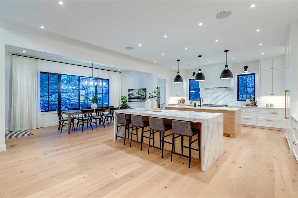 Offers are being presented Thursday February 19th at 730pm. A rare offering in the prestigious inner city community of Britannia, this custom built executive residence by Riverview Custom Homes, completed in May 2023 + beautifully curated by Smith Erickson Design Inc, represents uncompromising luxury + exceptional architectural design. Encompassing 4,770 square feet above grade + over 7,000 square feet of total living space, this remarkable two story five bedroom home showcases a spectacular layout designed for both grand scale entertaining + refined everyday living. A welcoming two story entrance introduces soaring ceilings + an extraordinary abundance of natural light created by expansive windows throughout. The rear of the home unfolds into a dramatic open plan anchored by a magnificent two story great room with a massive Town + Country gas fireplace. The adjoining chef’s kitchen is a statement in both design + function, featuring dual islands, professional grade appliances including Sub-Zero refrigeration + Miele cooking, a generous informal dining area, a large walk in pantry + an elegant butler pantry. At the front of the residence, a private office + a comfortable sitting room with a temperature controlled 500 bottle wine room with UV glass. Upstairs, four substantial bedrooms each offer private ensuites with heated flooring + vaulted ceilings. The primary suite is a luxurious retreat highlighted by a spa inspired ensuite with steam shower + waterfall + rain shower heads. A thoughtfully designed upper laundry with dual Electrolux washer + dryer sets enhances everyday convenience. The fully developed lower level expands the home’s versatility with a games room, TV lounge with seven speaker surround sound, guest accommodations, two additional baths, a professional grade gym with specialized flooring + 220V service, mudroom + dedicated sports storage locker. Elevated features include an elevator accessible from the garage to provide no barrier entry to all floors, Lutron RadioRA 3 lighting, Sonos sound in seven zones, integrated Unifi WiFi with seven exterior cameras + hardwired security. Additional highlights include solid core doors throughout, extensive custom storage, Vacuflo system + advanced HVAC with dual furnaces + air conditioning units + water softener. The outdoor experience is equally impressive. A fully covered four season outdoor room with wood burning fireplace, skylights, retractable Phantom screens + ceiling heat lamps allows year round enjoyment. The professionally landscaped grounds feature irrigation + ambient lighting, a heated driveway + front walk with snow melt, + a versatile sport court with basketball net that converts to an ice pad in winter. The triple attached garage has epoxy flooring + is wired for three electric vehicle connections. Completing this extraordinary property is an additional outdoor wood burning fireplace, creating a residence that flawlessly balances sophistication, comfort + cutting edge functionality .