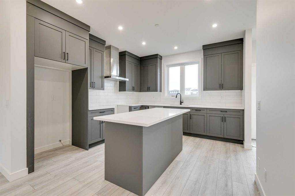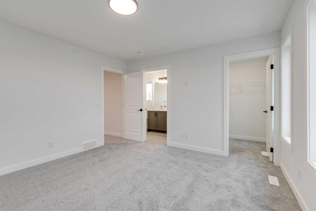 A brand new opportunity in Hotchkiss, this thoughtfully designed home by Broadview offers an open-concept main floor, an upstairs loft, and a side entrance with basement rough-ins in place for future development. The covered front porch welcomes you into a bright main level, with the kitchen positioned at the back of the home and centered around a spacious island, ample cabinetry, and seamless connection to the dining area and great room. A convenient powder room completes the main floor, ideal for everyday living and entertaining. Upstairs, a central loft creates valuable bonus space that can serve as a second lounge, home office, or study area. Two additional bedrooms, a full bathroom, and an upper laundry room provide practical convenience, while the primary suite features a walk-in closet and an ensuite with dual vanities. With direct basement access from the side entrance and rough-ins already completed, the lower level offers excellent potential for additional living space as your needs evolve. Located in southeast Calgary’s growing community of Hotchkiss, residents enjoy access to scenic pathways, green space, and the 30-acre wetland, with quick connections to Stoney Trail, Seton shopping, the YMCA, and South Health Campus. A smart new construction option offering flexibility, modern design, and long-term potential in a vibrant new neighbourhood.