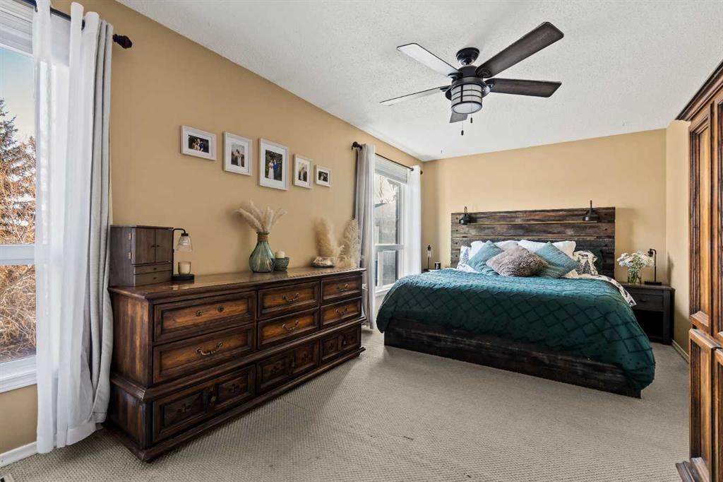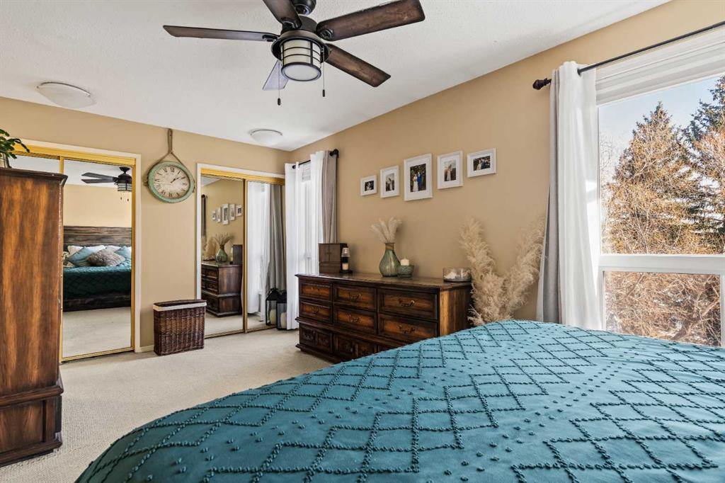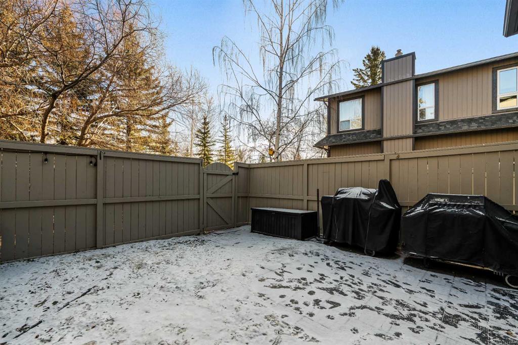 This beautifully maintained end-unit townhome is move-in ready and ideally located backing directly onto a green space and just steps away from parks and exceptional schools with quick access to major thoroughfares. Situated in the desirable community of Silver Springs, this 3-bedroom, 2.5-bathroom split-level home offers nearly 1,650 sq ft of developed living space. With a functional layout and generous storage throughout, this property is ideal for a couple, growing family, or professionals seeking comfort, charm, and convenience. Located on the east side of the complex, the home backs directly onto a green space featuring a soccer field, baseball diamond, tennis courts, a botanical garden, and the beautiful Silver Springs off-leash park, an unbeatable setting for outdoor enthusiasts. The main living room showcases hardwood flooring, soaring double-height ceilings, and large windows that flood the space with natural light throughout the day. This inviting area offers direct access to the backyard and is anchored by a gas fireplace with a brick surround, creating a warm and welcoming atmosphere, perfect for cozy winter evenings. The dining room and kitchen are located on their own dedicated level, making this space ideal for entertaining. The dining area features a reclaimed wood accent wall and overlooks the living room, adding a visual connection to the living space below. The kitchen offers a functional layout with quartz countertops, a suite of stainless-steel appliances, and a pantry. Completing this level is a convenient laundry room with built-in storage and a 2-piece powder room. Upstairs, the spacious primary suite (18’3″ x 10′) overlooks the backyard and includes dual closets and a 3-piece ensuite with a walk-in shower. Two additional well-sized bedrooms with ample closet space, a 4-piece bathroom, and a generous linen closet complete the upper level. The lower level provides additional flexible living space making it ideal for a home office, music room, or studio. The fully fenced private backyard offers plenty of space for children, pets, and entertaining, with direct access to the green space beyond, creating a seamless connection to the outdoors. Completing the property is an oversized single attached garage for secure year-round parking, along with a driveway for additional parking. Located in one of Calgary’s most sought-after communities, this Silver Springs home offers the perfect balance of quiet residential living with immediate access to parks, schools, shopping, and transit.