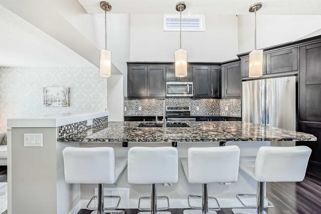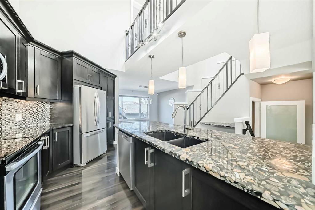 WELCOME HOME to this WONDERFUL FAMILY HOME. FULLY FINISHED with FULLY DEVELOPED BASEMENT, TOTAL OF 4 BEDROOMS 4 BATHS. OVERSIZED GARAGE, dry-walled, insulated, WIRED 220V. HIGH-END FINISHINGS; HARDWOOD floors, real wood and easy to refinish. CERAMIC TILE, LARGE CENTRAL ISLAND with GRANITE countertops, dark maple cabinets, tiled backsplash, crown mouldings & trims, window coverings and STAINLESS STEEL appliances. SPACIOUS living areas with functional, bright & open concept. OPEN STAIRCASE with SKYLIGHT & SPINDLE RAILINGS . Generous sized bedrooms, bathrooms with GRANITE countertops and under mount sinks. MASTER BEDROOM with WALK-IN CLOSET & 3 PC ENSUITE. 2ND BEDROOM can be converted back to a bedroom or you can enjoy the large dressing room with elegant cabinetry & finishings, GOOD SIZED 3RD BEDROOM and a FULL BATH completes the upper level. FINISHED BASEMENT is complete with HUGE REC ROOM , 4TH BEDROOM , BATHROOM & LAUNDRY ROOM. Great backyard with cedar deck, pergola with hot tub ready connections and stamped concrete patio. Nice front yard landscaping with artificial turf and amazing stone paved walk paths. Auburn Bay offers year-round activities including Lake access and playgrounds, steps away to the pond & walking paths, close to all amenities, hospital and schools ! CALL NOW to VIEW !!! MAKE THIS WONDERFUL FAMILY HOME YOUR OWN TODAY !