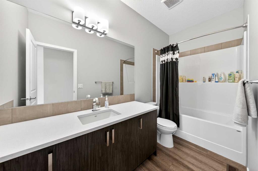 The upper level features a well-proportioned Bonus room, ideal for creating your own relaxing family space. This level offers 4 bedrooms, including two with private ensuites and walk-in closets. The Primary bedroom provides a comfortable retreat with a spa-inspired 5-piece ensuite featuring a double vanity with quartz countertops, a soaker tub, and a tiled standing shower. Another bedroom, filled with natural light from three west-facing windows, also includes its own 4-piece ensuite and walk-in closet. Two additional well-sized bedrooms, a 4-piece bathroom, and a convenient upper-level Laundry room complete this floor.