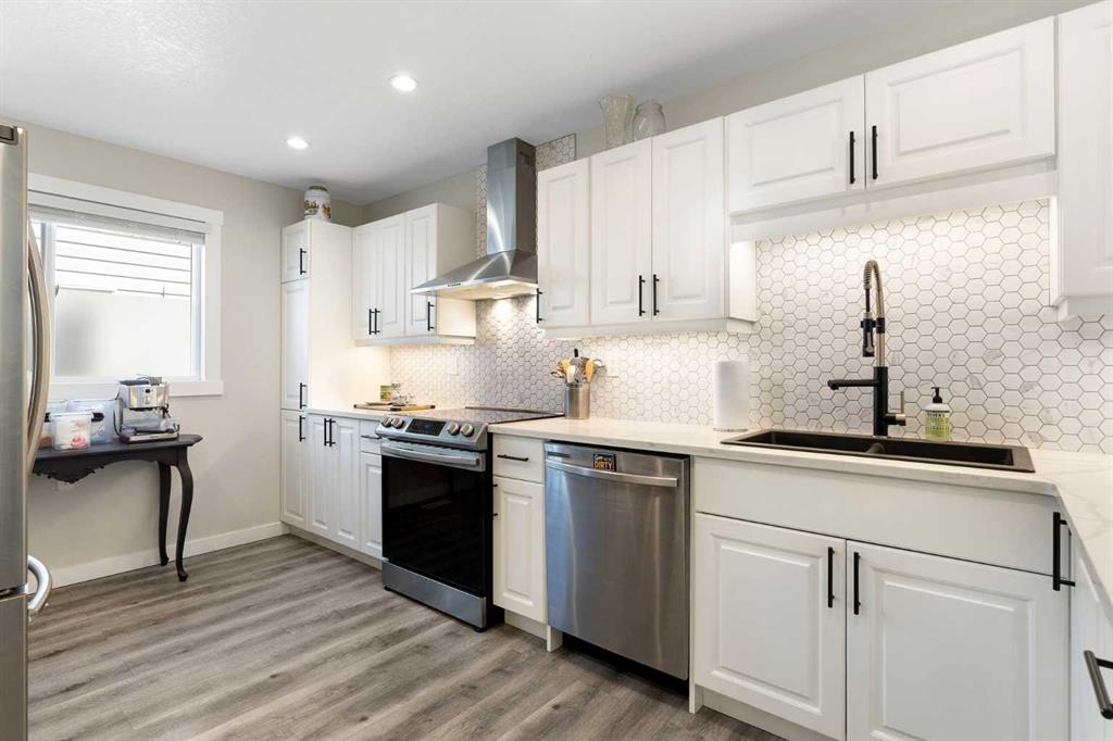 From the moment you step inside, the vaulted ceilings and open-concept layout create an immediate sense of space and sophistication. Warmth and character are felt throughout, from the stunning feature ceiling and statement fireplace wall to the skylight and large bay window that flood the main living area with natural light. The beautifully renovated kitchen is designed to impress, complete with upgraded stainless steel appliances, premium quartz countertops, tiled backsplash, crisp white cabinetry, and seamless flow into the separate dining area—perfect for everyday living and entertaining alike. The spacious primary bedroom offers a peaceful retreat with a generous closet and elegant 3-piece ensuite. Two additional bedrooms and a stylish 4-piece bathroom complete the main floor. Downstairs, the fully developed basement adds incredible flexibility and function with plush carpeting, a large family room with wet bar, and a separate entertainment room wired for 7.1 surround sound. This level also includes a spacious office, two additional bedrooms with egress windows, a 3-piece bathroom, and a beautifully finished laundry room featuring quartz countertops, tiled backsplash, and a convenient sink. Extensive upgrades include a high-efficiency furnace, hot water tank, doors, windows, garage door, stucco siding, newer roof, and permanent outdoor lighting that adds both curb appeal and ambiance. Outside, the low-maintenance yard offers a newer deck and fence, creating a private outdoor space to relax and unwind. Tucked away on a quiet street, this exceptional home is ideally located close to schools, parks, shopping, transit, and major roadways—offering the perfect balance of convenience and tranquility.
