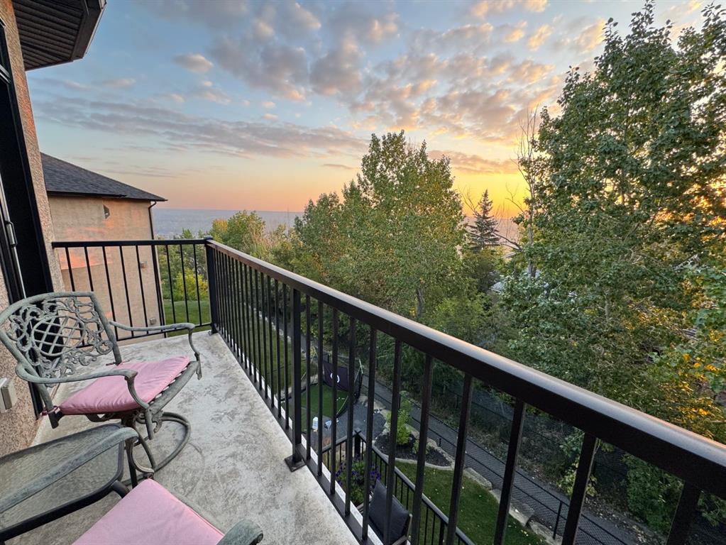 Upstairs offers four generously sized bedrooms, including a stunning primary retreat complete with a private balcony showcasing beautiful views. The spa-inspired 5-piece ensuite includes a steam shower, and the large walk-in closet provides ample space. A charming front balcony offers the perfect spot to enjoy summer sunsets.