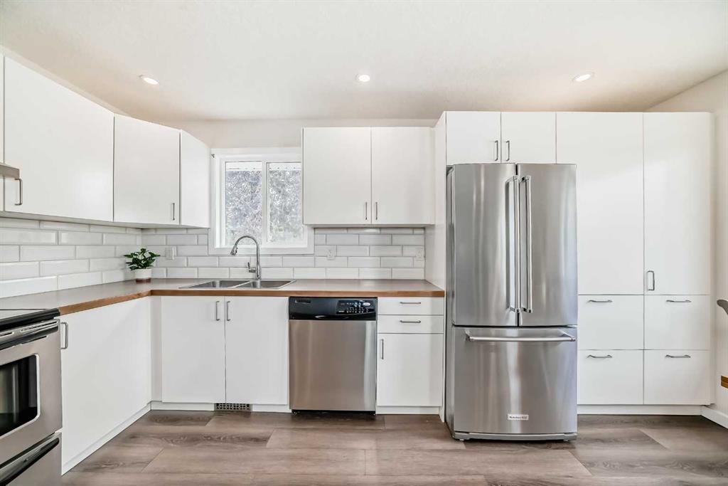NEW PRICE! Welcome to this UPDATED 4 bedroom, 3 bathroom bungalow with a RENOVATED ILLEGAL SUITE on a quiet street. The open-concept main floor features a modern UPDATED KITCHEN with updated appliances, including a brand-new $2,000 fridge, plus a spacious living and dining area. The massive primary bedroom includes an UPDATED 2 PC ENSUITE, with a second bedroom and RENOVATED 4 PC MAIN BATHROOM nearby. A BRAND NEW WASHER AND DRYER are located at the back entrance. The basement suite offers an eat in kitchen, 2 bedrooms, 1 den, 1 bathroom, in-suite laundry, and ample storage. Mechanical updates include a NEW FURNACE, NEW HOT WATER TANK and NEW ATTIC INSULATION. The fully fenced backyard has a garden, greenhouse, tool shed, and patio. A paved alley leads to an oversized heated double garage. Walking distance to schools, parks, and shopping. Don’t miss out—book your showing today!
