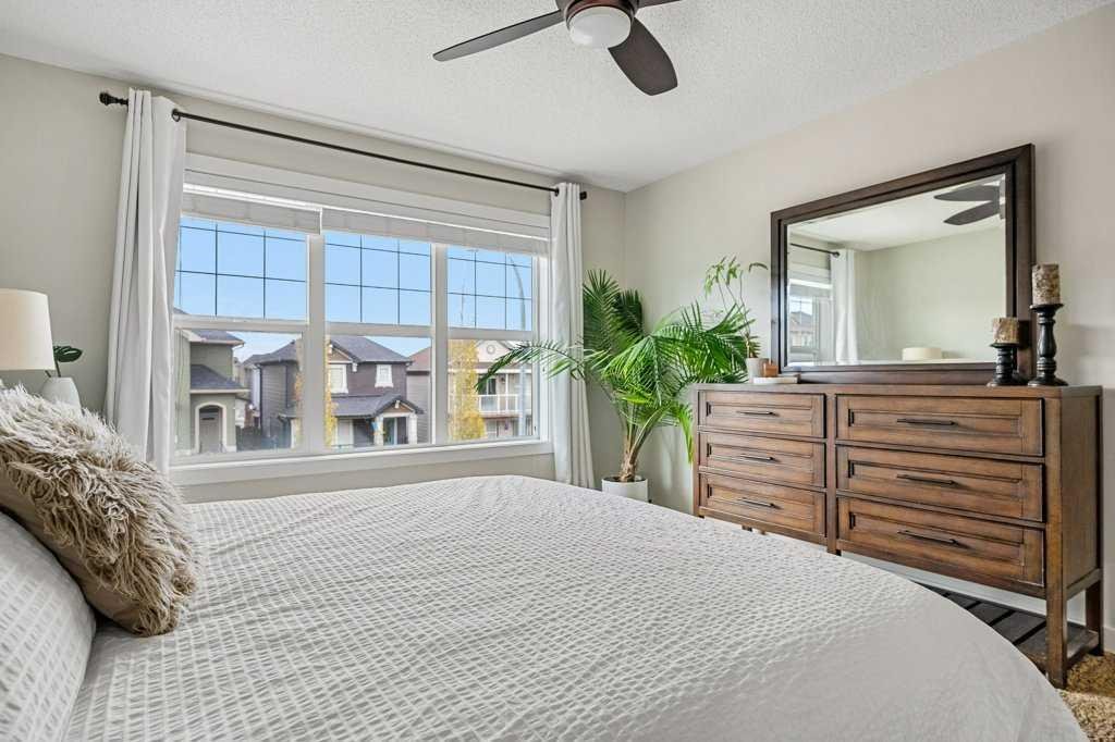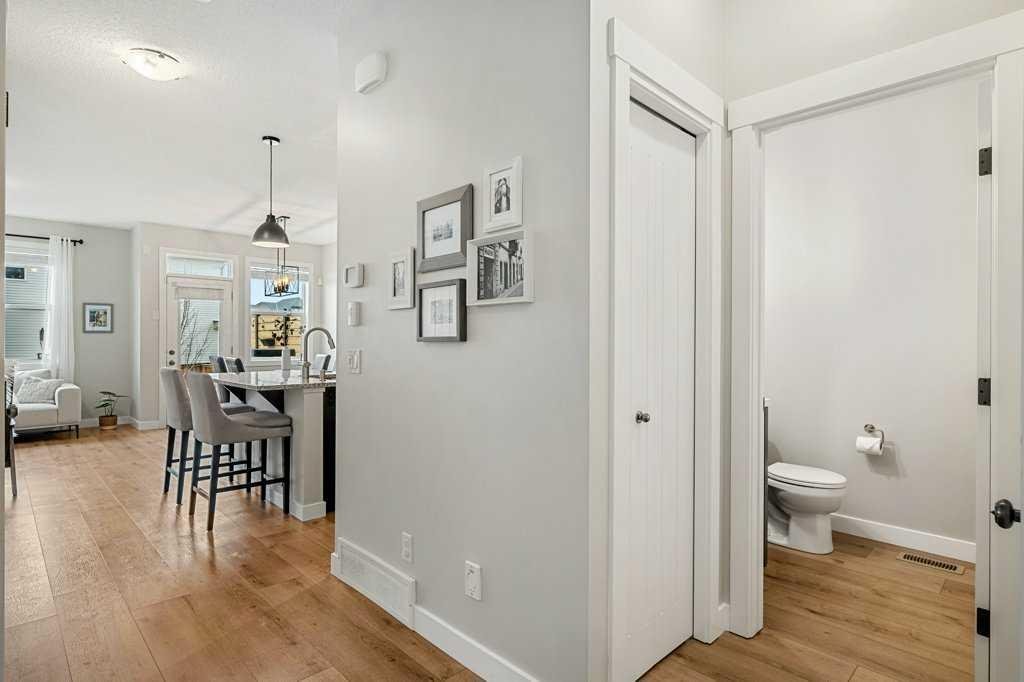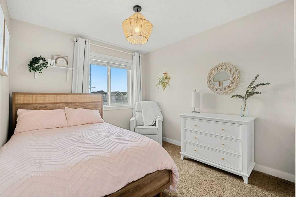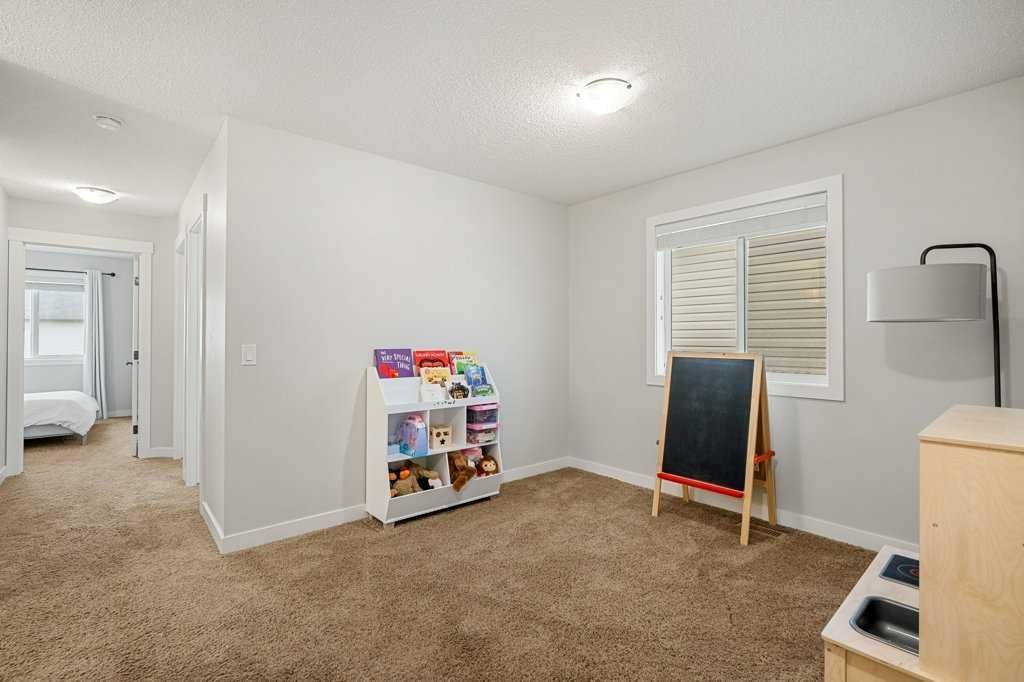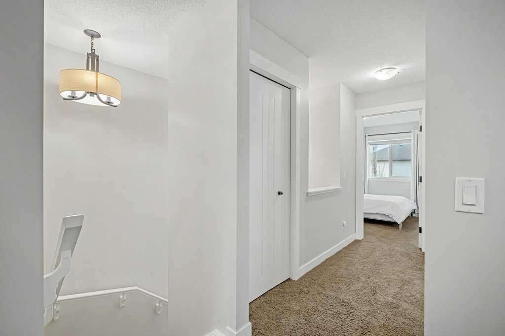 Welcome to this original owner home poised on a traditional lot within a quiet family location with quick access to local amenities as well as the ease into and out of the community to all major routes! Enter into new vinyl plank flooring, 9′ ceilings a front foyer which blends into the garage access a 2-piece bath with a stylish storage vanity and 2 coat closets. The back of the home is wide open, perfect for family gatherings or entertaining with a generous lifestyle room boasting a gas fireplace with stone surround connecting to the main floor dining area with garden door access to your South backyard. The kitchen lends itself to promote ease of use with its center island, stone counters, extended height cabinetry a slide in gas stove, new French door fridge in 2024, new microwave hood fan in 2022, new dishwasher in 2024, tiled back splash and pendant lighting. The East stair location on the traditional lot opens up the options to create a separate entry into the lower level(with permits). The upper plan has room for all and the convenience of an upper laundry room with a new washer in 2024 and beginning with a central bonus room, a tiled 4-piece guest bath, 2 generous kids rooms to the back and the primary bedroom large enough for a king size bed without the sacrifice of space, a walk in closet large enough for 2 and a tiled 3-piece en-suite with storage vanity and full size tiled shower. A fully fenced and landscaped yard adds privacy to your outdoor space including mature trees, a rear paved back lane, new shingles, a composite deck with added privacy wall and plenty of green space for the pets and kids! The homes lower level is the perfect space to add to the homes value for with the location of the utilities and footprint. All this in the welcoming family community of Nolan Hill with no neighbors behind and a 5 minute walk to the new K-9 school currently under construction.