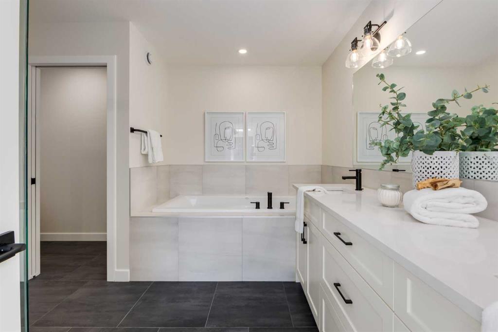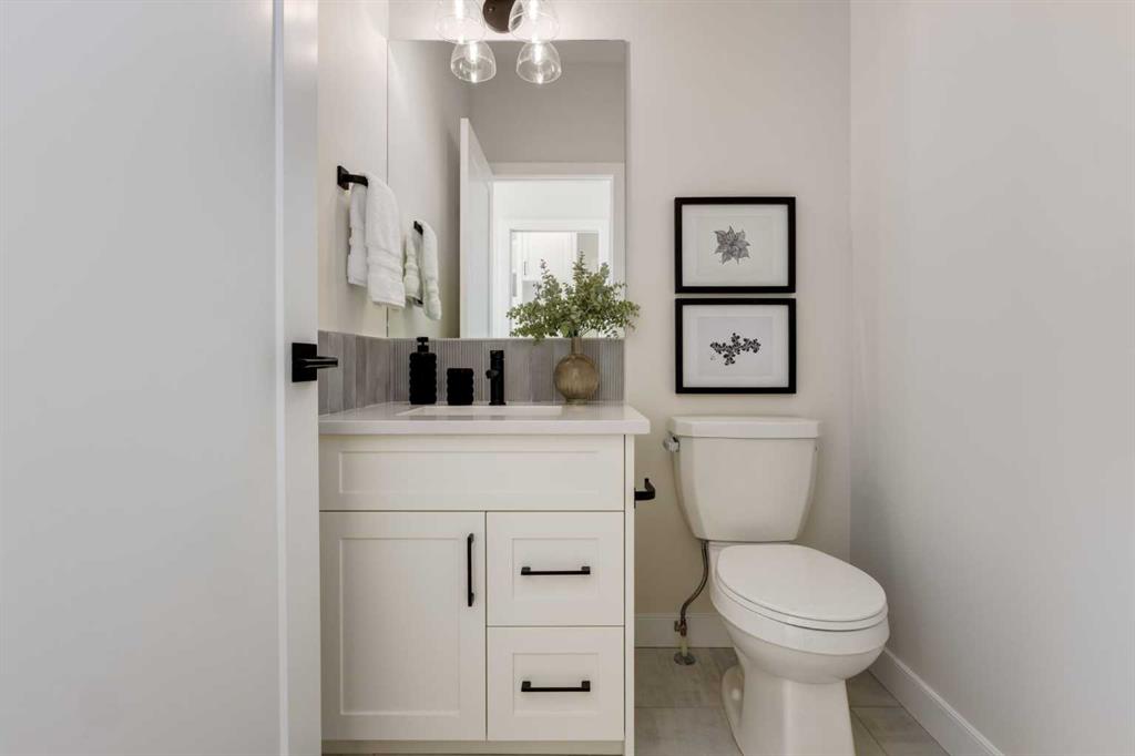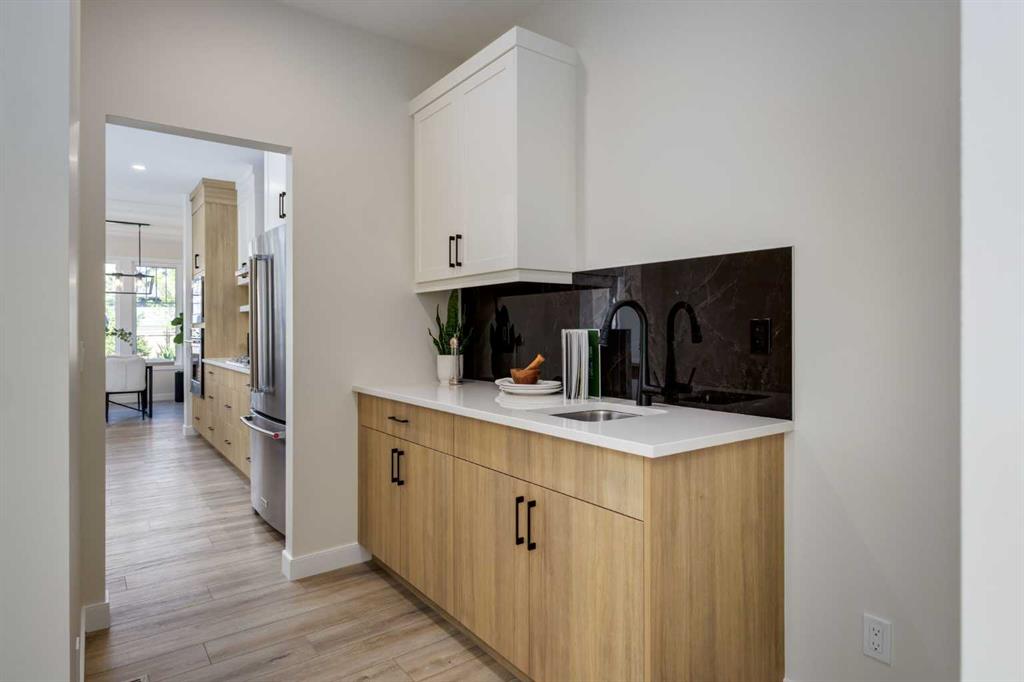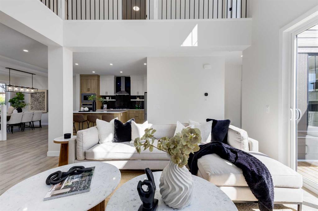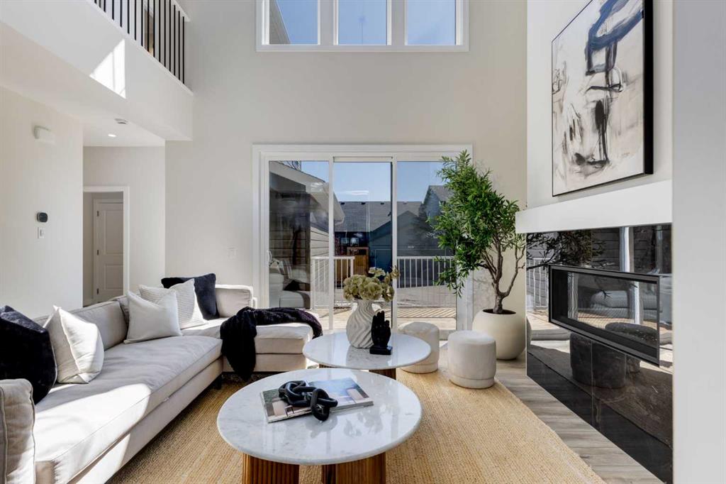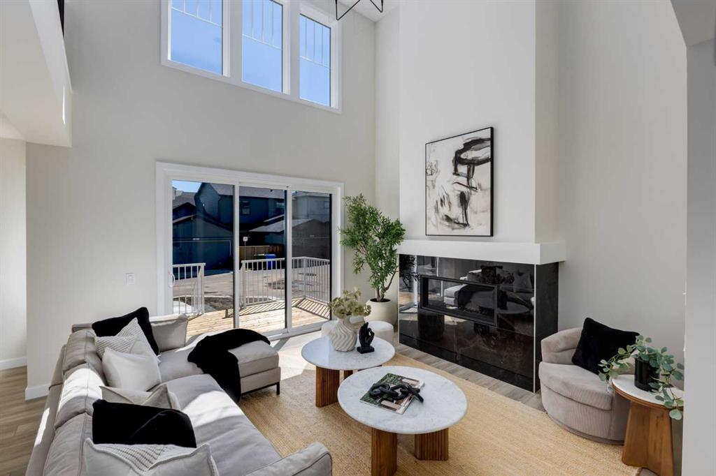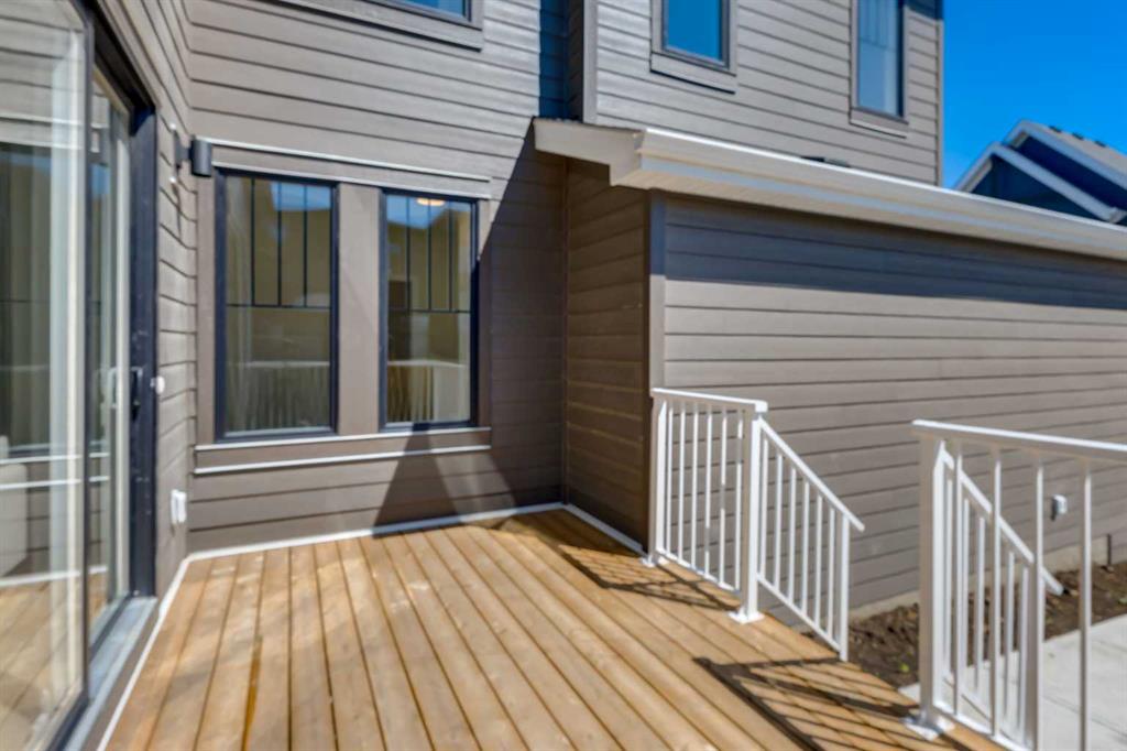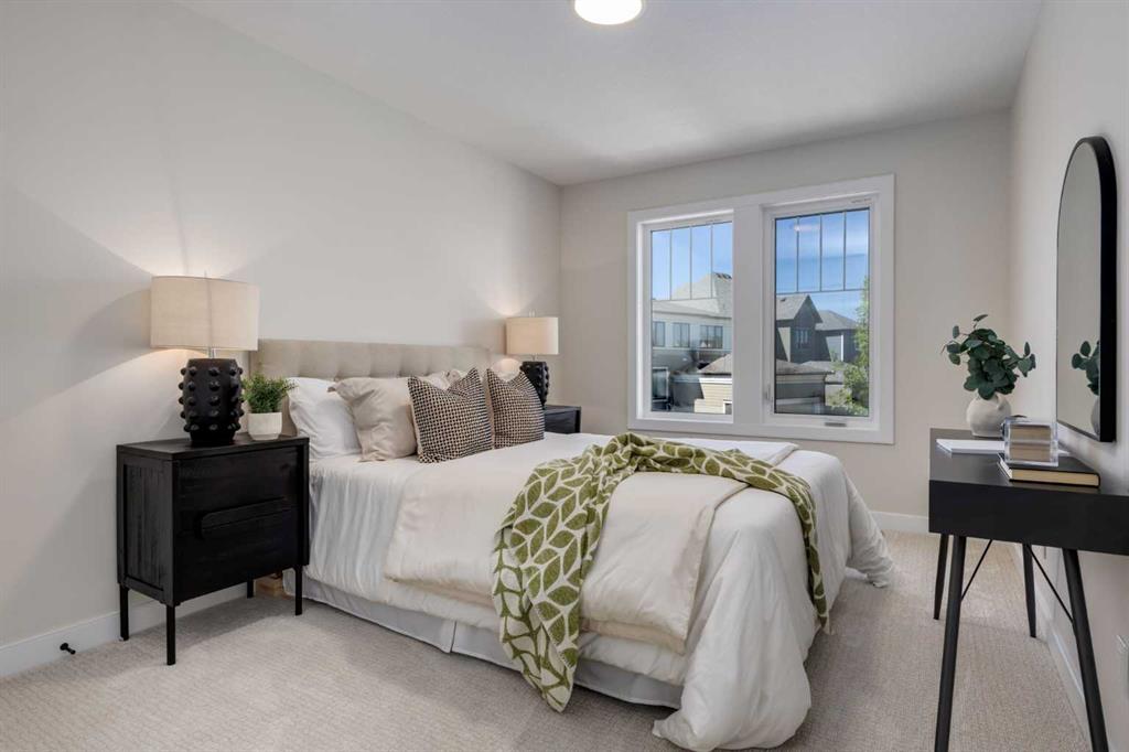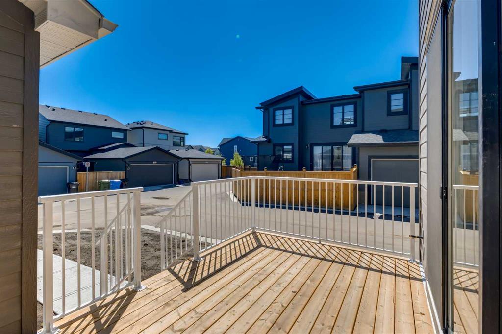 Welcome to the Engler, an architectural two-storey that pairs standout design with day-to-day function, set in a prime front-facing position on Hearth Green. With the park right out front, you’ll love having a natural gathering place for kids to run, neighbours to connect, or a quiet evening by the community firepit. Inside, the home makes an immediate impression with an open-concept plan filled with natural light, soaring two-storey windows, and a dramatic floating staircase with open black railing that keeps sightlines wide and the vibe airy. The kitchen is the true centrepiece, equal parts beautiful and practical, finished with two-tone cabinetry (white uppers raised to the ceiling and rich wood-grain lowers), crisp white quartz countertops, a white Silgranite sink, sleek black hardware, and a bold black backsplash that brings the whole look together. Cooking is a treat with a gas range plus built-in oven and microwave, while the open shelving beside the hood fan adds the perfect modern touch for styling and everyday convenience. Entertaining is effortless thanks to the full butler’s bar, complete with a sink and space for an additional fridge or freezer, ideal for hosting, family movie nights, or keeping things organized when life gets busy. The dining area is bright and welcoming with a statement light fixture and sun pouring in throughout the day, flowing seamlessly into the open-to-above living room where a modern black tile fireplace surround mirrors the kitchen finishes for a cohesive, designer feel. At the back of the home, thoughtful locker-style built-ins and generous mudroom storage keep backpacks, boots, and winter gear neatly tucked away, because real life happens here, and this home is built for it. Upstairs, the winged bedroom layout creates privacy and smart separation: the vaulted owner’s suite overlooks the backyard, while the secondary bedrooms are positioned at the front of the home. You’ll appreciate the balance of comfort and function with a spa-inspired ensuite, a spacious five-piece main bath for the kids, and a large upper laundry room that makes the daily routine smoother. The open-to-below upper hallway adds a loft-like feel and reinforces the bright, expansive atmosphere created by the home’s abundant windows. Downstairs, 9’ foundation walls offer excellent future development potential and a more open, comfortable basement feel. Outside, step onto your deck right off the patio doors, perfect for summer BBQs and morning coffee, plus enjoy the convenience of an attached double garage. Set in Alpine Park, this home is surrounded by a community built around connection: parks, pathways, and a future village centre with local shops and cafés on the way. With design inspired by Calgary’s mountain, prairie, and urban influences, Alpine Park is crafted to encourage neighbourliness, and the Engler is a perfect match for that lifestyle.