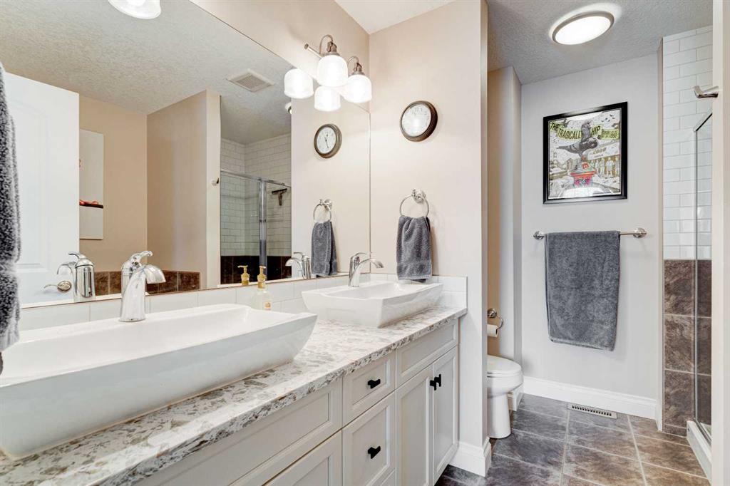 3 BEDROOMS | 3.5 BATHS | DOUBLE PRIMARY SUITES | 2,149 SQFT OF LIVING SPACE | FINISHED BASEMENT | DOUBLE GARAGE | SOUTH BACKYARD | UPGRADED & MOVE-IN READY | Welcome to this bright and beautifully upgraded townhome in the heart of desirable Quarry Park. Offering 3 bedrooms, 3.5 bathrooms, double primary suites, and a fully finished basement, this home delivers comfort, convenience, and style in every corner. Step inside to a warm open concept main floor featuring wide plank laminate flooring, a cozy gas fireplace, and a spacious living and dining area perfect for everyday living and entertaining. The kitchen checks all the boxes with quartz counters, a large island, stainless steel appliances, a pantry, and plenty of storage, all overlooking your sunny south facing backyard. Upstairs, you’ll find two generous primary bedrooms, each with its own private ensuite and walk in closet, an ideal setup for guests, roommates, or family flexibility. The professionally finished lower level adds even more living space with a large bedroom, a bright recreation and family room, heated floors in the lower bathroom, and two separate storage rooms. Thoughtful recent updates include a new hot water tank (2024) and a full interior repaint (2024). Enjoy summer BBQs on your back patio with a gas line hookup, and appreciate the convenience of a double detached garage with a paved, double wide back lane for easy access and extra parking. Located steps from parks, paths, the Bow River, playgrounds, transit, shopping, restaurants, and the YMCA, this is a move in ready home in a truly exceptional community. Don’t miss your chance to make it yours!