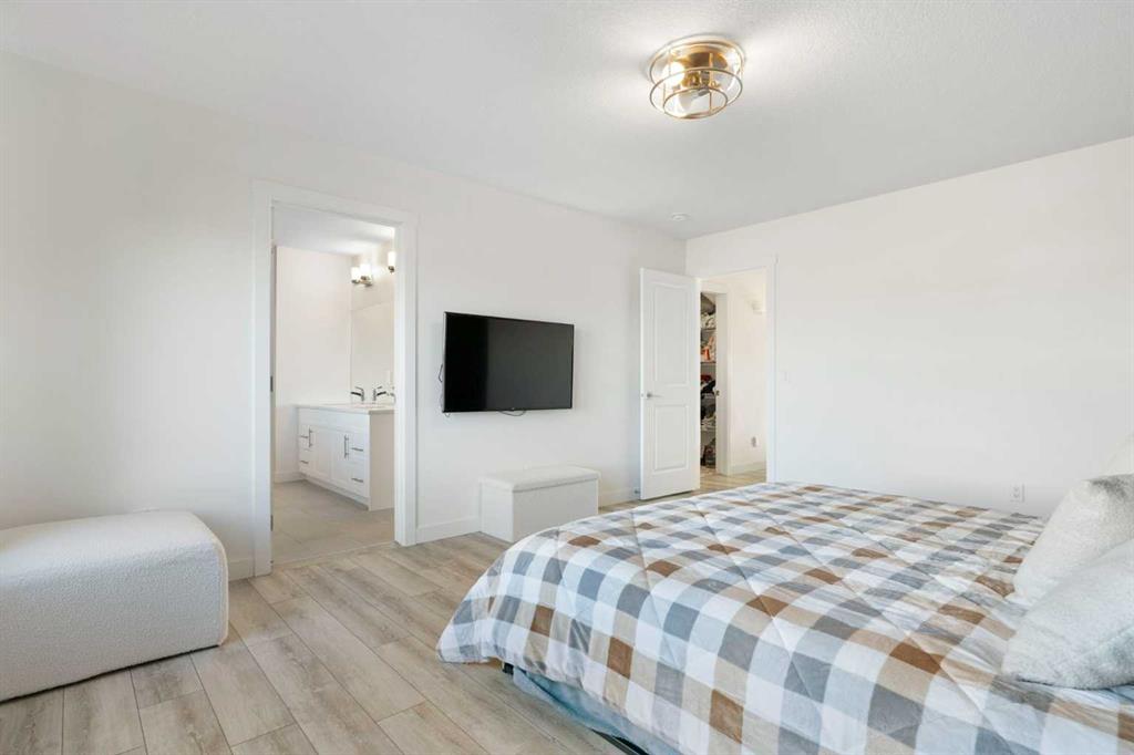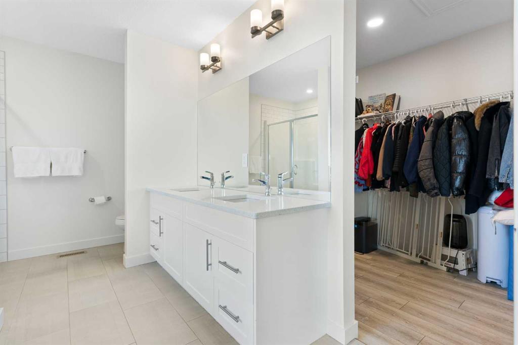 Upstairs, there’s a spacious bonus room at the front of the home with a potential to convert to a fourth bedroom if needed. The primary bedroom looks out over the greenspace and includes a large ensuite with a soaker tub, separate shower, and double vanity. Two more bedrooms with generous closets, a full bathroom (also with double vanity), and a conveniently located laundry room finish off the upper level.