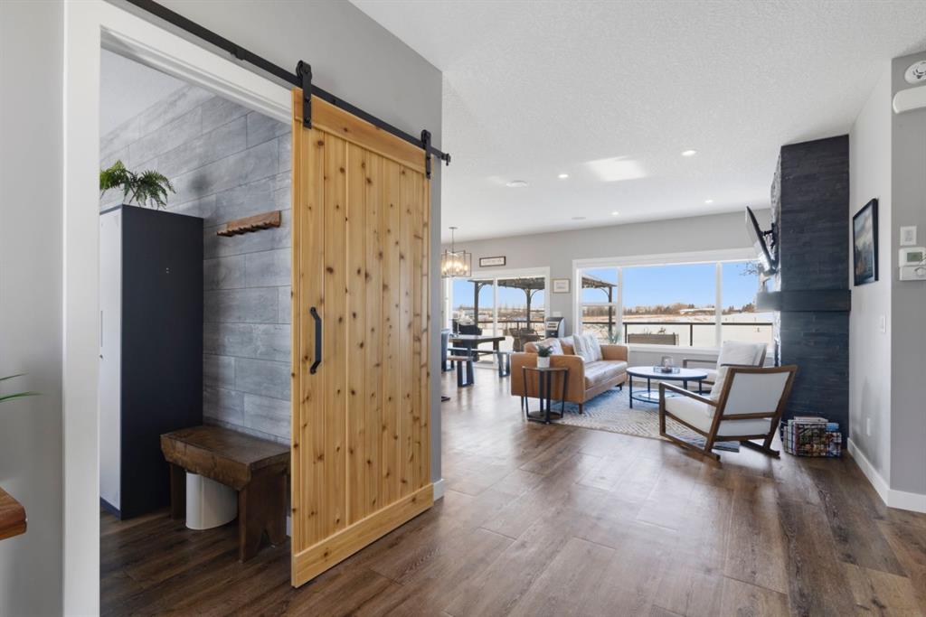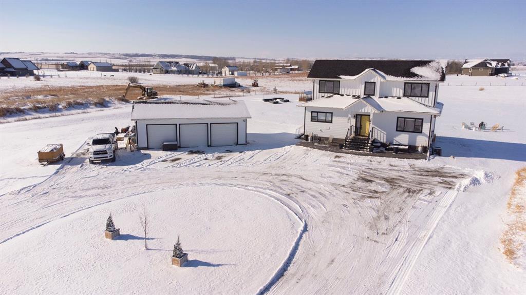 The perfect location for a city commuter or Okotoks resident! This home is situated just east of Okotoks and Green Haven and is also just a quick three minute drive to Highway 2 north which gets you to Calgary in less than 15 minutes! Drive into this 3 acre parcel and the first thing you notice to the west is the unobstructed skyline full of Rocky Mountains! The exposed aggregate front patio and staircase lead you up and into the home where at that point it is very evident that this house has been a meticulously maintained and upgraded since the year of purchase. With an office to your immediate right and the main floor, laundry and mudroom to your immediate left. Once a little deeper into the main floor the open concept that leads back to the great oversized windows again shows off those fabulous Mountain View’s. The Kitchen was completely redesigned and rebuilt with beautiful Walnut with custom built-ins for appliances and system for your in ceiling audio. The dining room leads out to a brand new, oversized, spectacular deck with glass railing, and pergola to shade you from the all day sun and sunsets you receive in the backyard. The main floor also hosts one bedroom and a fully remodeled, four piece bathroom. Now upstairs is what makes this home so unique in my mind! THE MASTER RETREAT! The whole second floor is all yours with a massive bedroom, stunning, remodeled, five piece en suite and a massive walk-in closet. One of the biggest highlights has to be the unrivalled Westerly view. The basement is also fully developed with another two bedrooms, four piece bathroom and the great size rec room. Head back outside to the garage or currently used shop that has a current sport court that could easily be converted into another fully enclosed garage. The garage is outfitted with 220 power, heat and water. You will certainly see the attention to detail and the extreme pride of ownership while viewing this property. Hope you enjoy.