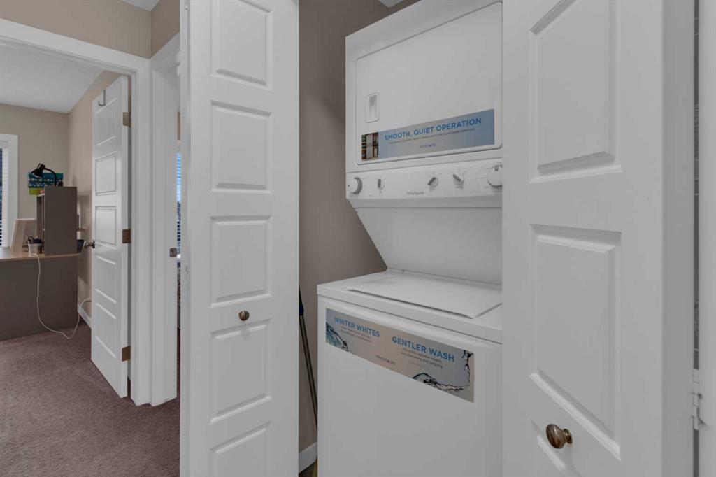 Step into contemporary elegance with this stunning, move-in-ready 4-bedroom 2.5 bath townhome with double attached garage in the highly desirable community of New Brighton. Offering over 1600 sq. ft of sophisticated living space, this property is perfectly suited for modern families, professionals, or first-time owners seeking comfort, convenience and quiet. Upon entry, the bright, open-concept main floor, showcases the gleaming hardwood floors and an abundance of natural light. The spacious living room flows seamlessly into the dining area and a chef-inspired kitchen, highlights stainless steel appliances, quartz countertops and ample cabinetry. Glass doors off the dining area lead out to your west-facing patio for effortless grilling and outdoor relaxation. Upstairs, you’ll find three well-proportioned bedrooms. The generous primary suite is a true retreat, boasting a large walk-in closet and a luxurious 4-piece ensuite bath. Two additional well-sized bedrooms are perfect for children or guests, serviced by a second full bathroom with the convenience of a dedicated upper-floor laundry area. The lower level extends the living space with a fourth bedroom/office space/flex room and additional utility room with storage. Added convenience with a double attached heated garage plus guest parking directly across from the townhome. Located in a well-managed, pet-friendly complex, you’re just moments from local schools, various parks, and sports fields and the renowned New Brighton Community Centre, offering year-round fun from splash parks to outdoor hockey, is a short drive away. Plus, the nearby shops, services, and dining of High Street in McKenzie Towne ensure everything you need is close at hand. Don’t miss the chance to own an upgraded, stylish home in one of Calgary’s most vibrant communities. Schedule your private viewing today!