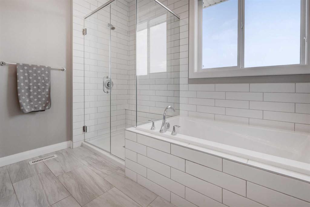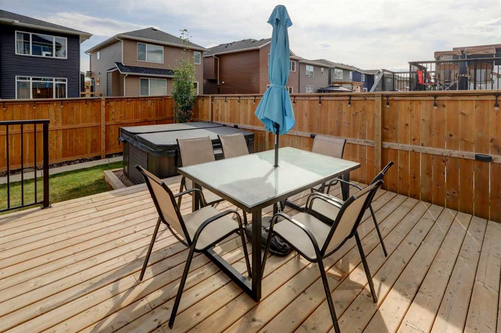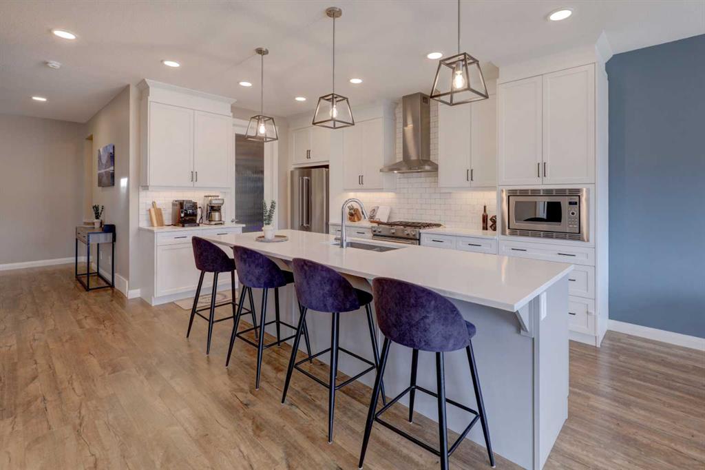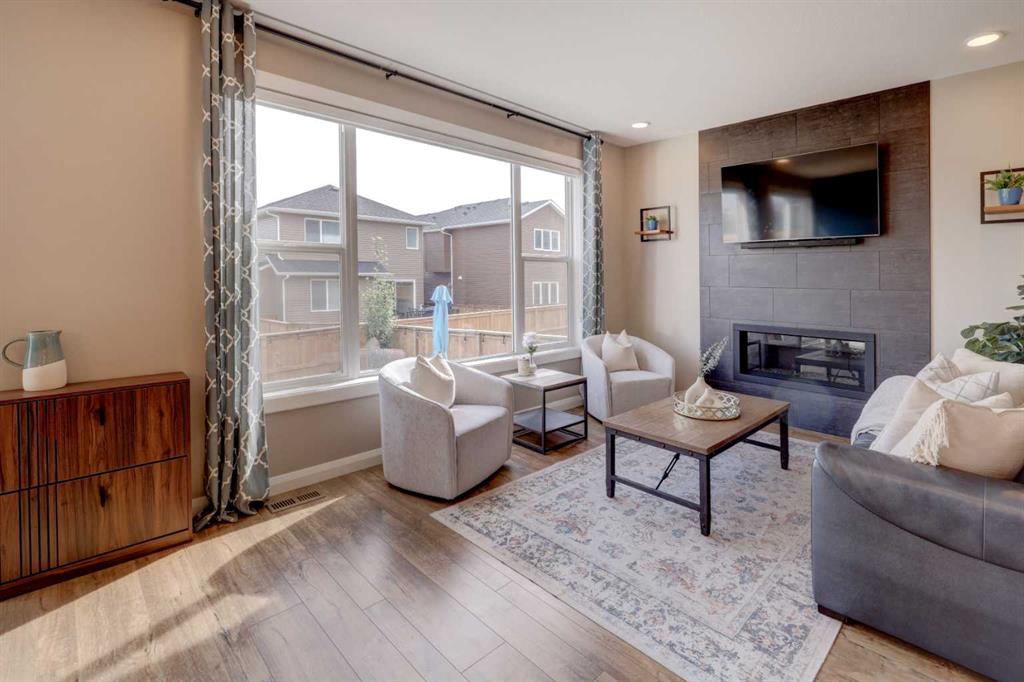 *** Open House Sunday Oct. 26, 1 – 3 pm*** HOME SWEET HOME! Welcome to this exceptionally upgraded two storey family home WITH A FULLY FINISHED BASEMENT and a DOUBLE GARAGE perfectly located in the desirable community of Rivercrest in Cochrane. With 5 bedrooms, 3.5 baths and over 3,579+ SQFT of total living space this home has everything that you could want! As you enter the home you will instantly notice the luxury vinyl plank flooring and sun-drenched mud room with a bench. Moving into the kitchen and main living area you will notice the large kitchen quartz island, perfect for hosting gatherings. The upgraded kitchen is a chef’s dream, complete with a gas range, quartz countertops and high-end stainless steel appliances. Just off the kitchen is the office/den with large french doors for privacy. The open concept on the main floor allows you to move with ease between the large dining space and living room where you can enjoy the warmth from the gas fireplace on those cold days. Stepping out onto the large east facing deck through the oversized patio doors you can spend those long summer days BBQing and using the hot tub (included). Heading up to the second level, you get breathtaking mountain views and you can’t help but notice the 9 ft ceilings and 8 ft doors while sitting in the bonus room area. The large primary bedroom features a large walk-in closet and a spa-like 5 piece ensuite with a cozy soaker tub and double vanity sinks you will look forward to relaxing. The other 3 bedrooms have ample space and conveniently feature walk-in closets. Don’t forget the fully finished basement that features another full bath, bedroom and a large recreation space that can be utilized to suit your needs. This home features a double attached heated garage with additional driveway parking. Located in a extremely family-oriented community close to all major amenities including schools, walking paths, shopping, restaurants and a quick drive to both Calgary and endless opportunities for outdoor adventures. This location is ideal for those looking to embrace a balanced lifestyle, with the majestic Rocky Mountains just a stone’s throw away, offering year-round recreation for outdoor enthusiasts. MUST VIEW! Don’t wait, book your private viewing of this GEM today!