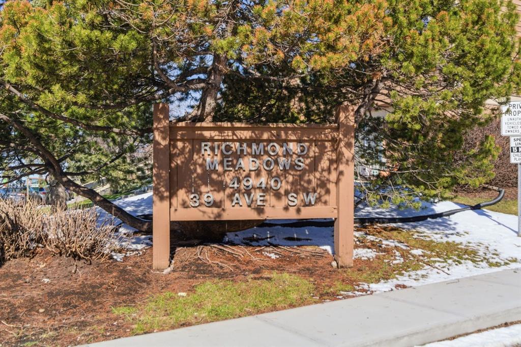 Last 2 bedroom unit to sell here was back in Nov 2025! Richmond Meadows is a highly desired complex. Last owner lived here for 38 years. Bring your creativity and make this unit your OWN! Well run development. PET friendly. Condo Board has strong record for maintaining this beautifully maintained property. Tucked into a quiet, well-managed community known for its mature landscaping and LOW condo fees, this home offers a rare combination of comfort, convenience & long-term livability. Inside, the home welcomes you with EAST facing door & front patio area (patio doors already replaced!) – ideal for quiet morning coffees & listening to birds! Closet inside front door. The spacious living room offers privacy with mature trees out front & features cozy corner gas fireplace. Dining area located conveniently beside kitchen. Upstairs, you’ll find two generously sized bedrooms with plenty of closet space, newer windows, along with a four-piece bathroom. The developed lower level adds valuable flexibility, offering a large room that can easily function as a media space, home office, gym, play area, along with a dedicated laundry and HUGE storage area with built in shelves. Glenbrook continues to stand out as one of Calgary’s most accessible and family-friendly communities – offering quick connections to downtown, major routes like Glenmore Trail and Stoney Trail PLUS a wide range of nearby amenities including schools, parks, shopping & transit. Whether you’re commuting, running errands, or enjoying the outdoors…everything you need is just minutes away. WALK to almost everything you need! Drive downtown in under 14 mins. Be in the mountains in 45 mins. Airport in 30 mins. Attn students – MRU is 8 min drive or walk there in 30! Richmond Meadows is known for its pride of ownership, peaceful atmosphere & strong management – making it an excellent choice for first-time buyers, young families or investors looking for a solid property in a consistently desirable neighborhood. This is an opportunity to own in Glenbrook at an attractive price point, without compromising on space, location or quality of life. Complex updated over past few years with new Gutters and Roof Shingles. Low condo fees include water and landscaping, shoveling. Community center available to host family parties and other events for a small rental fee.