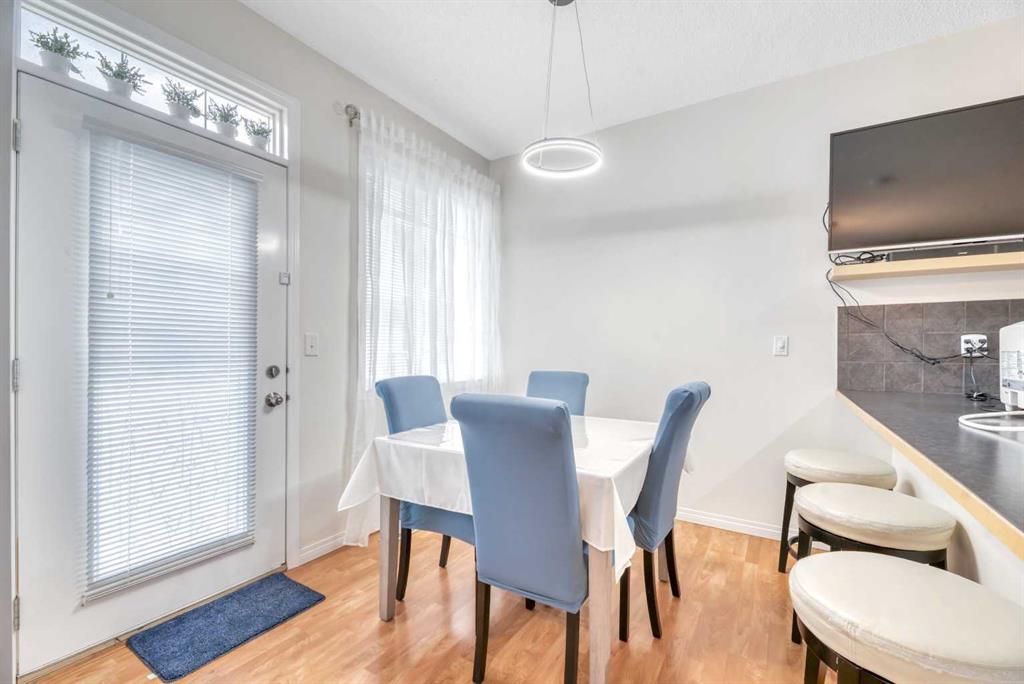 This bright and spacious END UNIT townhome in Emerald Landing is perfectly situated in a well-managed complex with low condo fees, in the sought-after, family-friendly community of Evergreen. Offering 3 bedrooms, 2.5 bathrooms, and an attached garage, the home features an inviting main level with a comfortable family room, sunlit dining area, and a functional maple kitchen complete with tile backsplash, raised eating bar, plenty of cabinetry, and generous counter space. Large windows fill the home with natural light, while patio doors lead to a good-sized deck backing onto green space, with convenient access to visitor parking. A main floor powder room adds extra convenience. Upstairs, you’ll find a spacious primary bedroom with its own ensuite and walk-in closet, along with two additional bedrooms, a full bathroom, and a practical upper-floor laundry area. The attached garage and driveway provide added storage and ample parking. Ideally located close to schools, playgrounds, shopping, and transit, and just minutes from Fish Creek Park with easy access to Stoney Trail, this home offers a great combination of space, location, and everyday comfort.