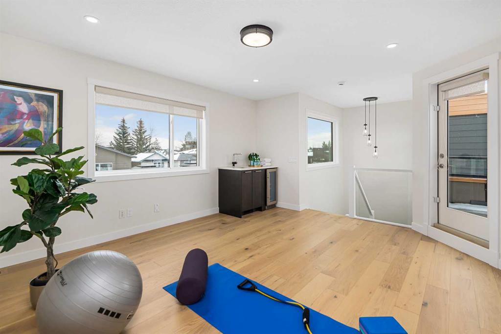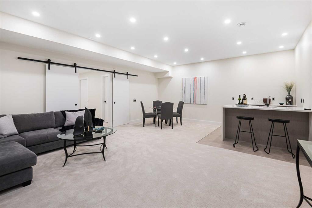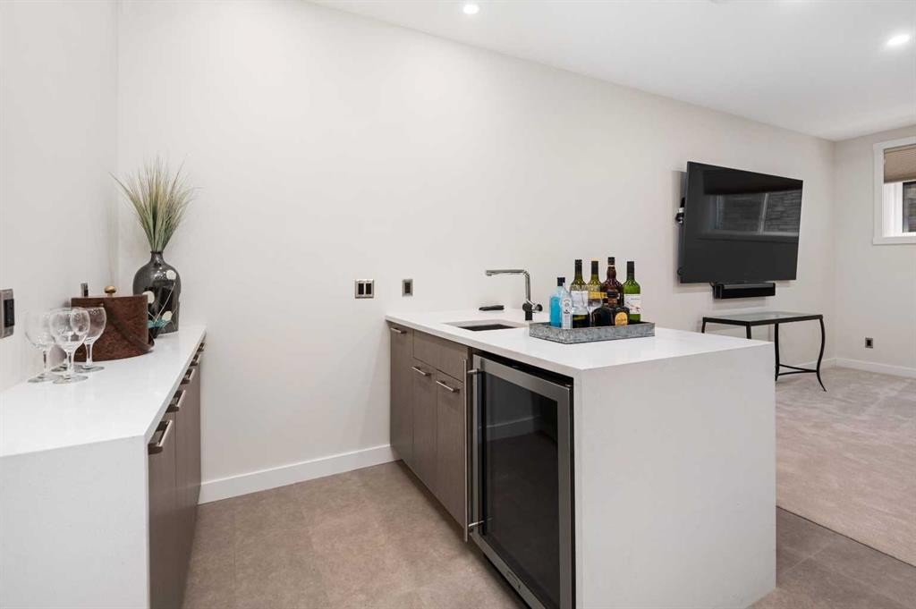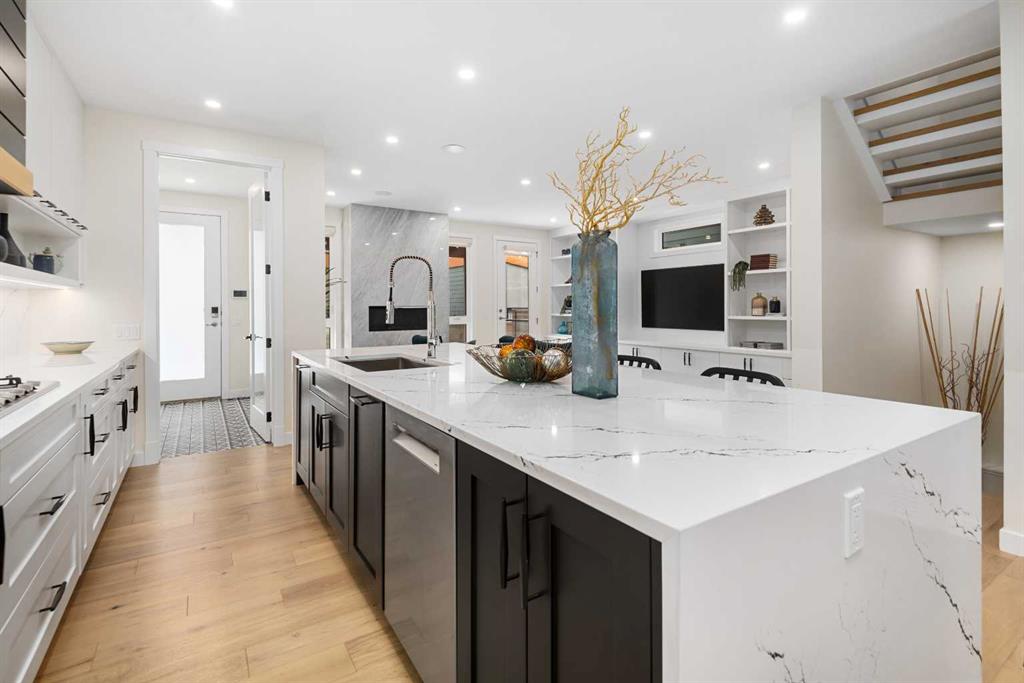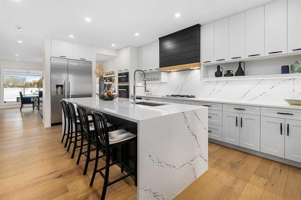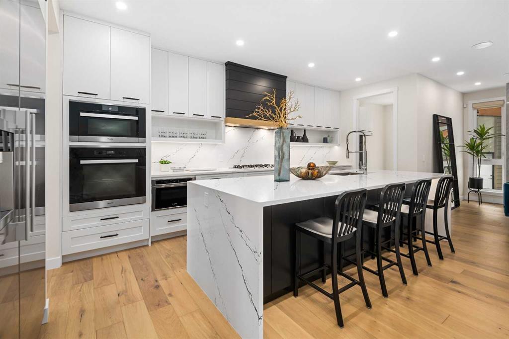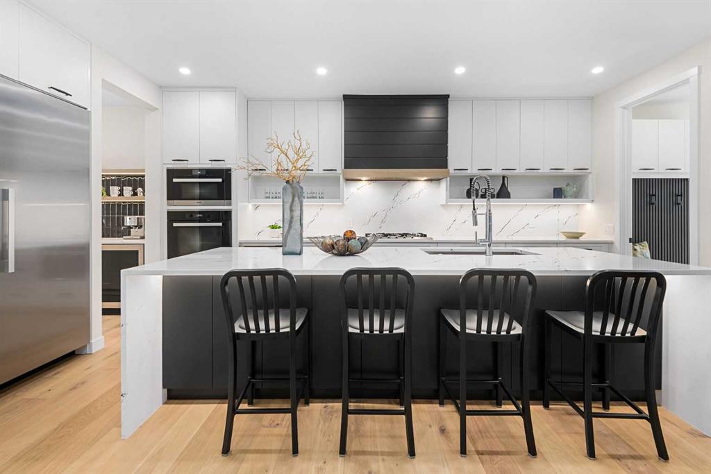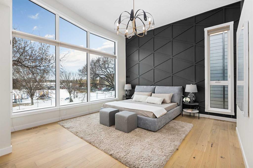Located on a beautifully tree lines street overlooking a huge park. This fully updated contemporary home boasts over 3900 square feet of curated space. Perfect for the executive family upgrading to a single family home in one of Calgary’s Best communities. This home has immence curb appeal and welcomes you with mature trees and a front west facing patio. The main level features a spacious formal Dining area overlooking the park. The great room is large and open, showcasing an amazing kitchen with top line Miele and Bosch appliances and a huge island finished in Cambria Quartz. Restortation Hardware throughout the kitchen. Gas stove, dual ovens, huge built in Fridge. A great living space with built in cabinetry, fireplace, and access to a huge pergola covered deck. A separate mud room and powder room are well secluded. The second floor features 3 large bedrooms, all with ensuites and walk-in closets. The master/ primary suite showcases floor to ceiling windows overlooking the park with west mountain views, with you own balcony. An amazing space with a huge ensuite, encompassing dual vanities, steam shower and soaker tub. Of course you have a custom built walk-in closet. The additional bedrooms are self contained, spacious and have large picture windows. Conveniently, this level has your laundry area with full sink and lots of cabinets. The third floor bonus room, is the perfect space for a yoga room, gym, or office. Its bright spacious and has amazing mountain views to the west, and an additional balcony. There is also a wet bar which can make this an excellent entertainment space. The basement is level adds additional space with a massive entertainment room, bedroom and full bath. Off the rear deck you have a fully fenced yard with a custom putting green, and play area. The oversized garage with an 8 foot door can accomodate two full SUV’s easily with space to spare. A great location overlooking the park, which provides privacy and all day sun, inclusive of your west mountainviews. Additional features include a full Control4 smart home with Lutron switches, in-floor in the basement and upper floor bathrooms, and central A/C. This home is great value in a perfect location, steps to schools, parks, and the heart of Marda loop with great access to roadways.