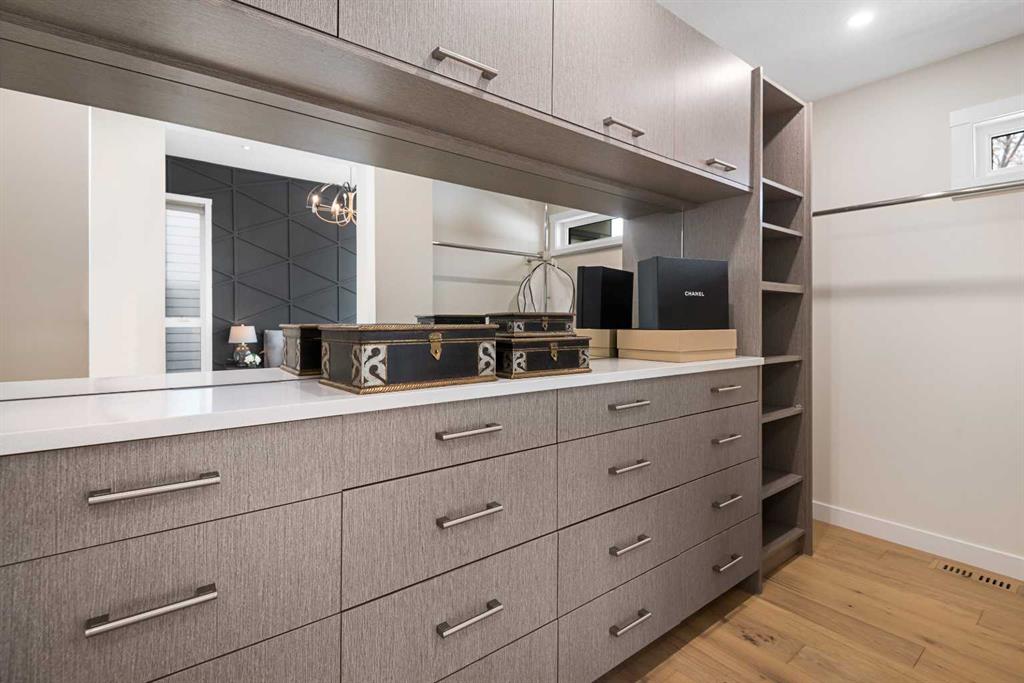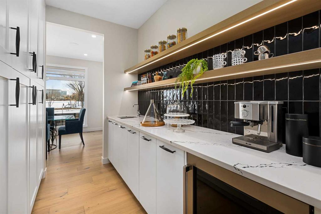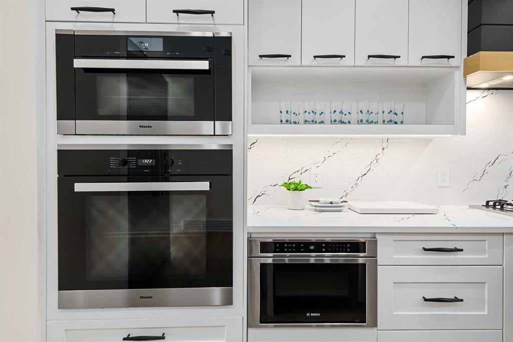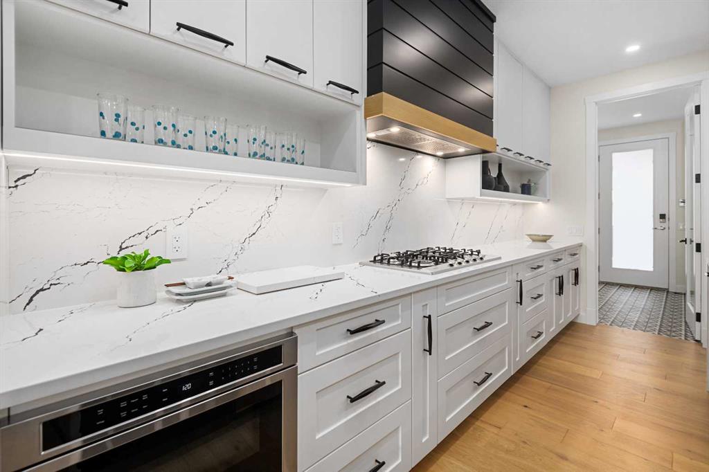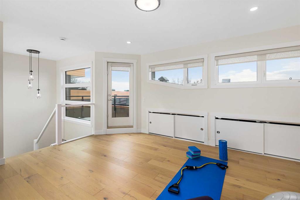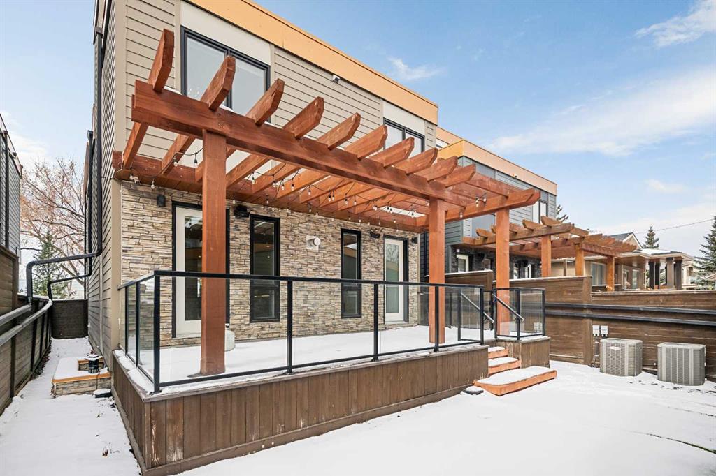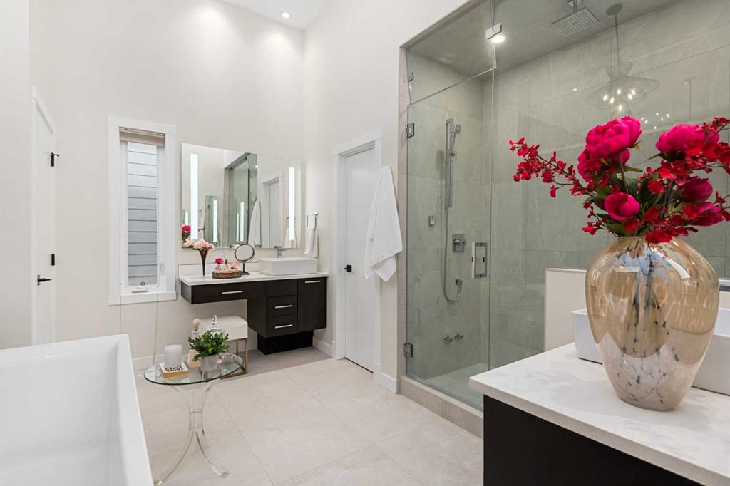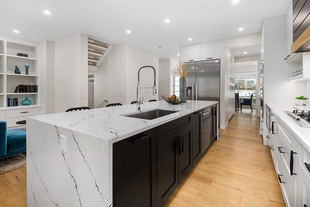 Located on a beautifully tree lines street overlooking a huge park. This fully updated contemporary home boasts over 3900 square feet of curated space. Perfect for the executive family upgrading to a single family home in one of Calgary’s Best communities. This home has immence curb appeal and welcomes you with mature trees and a front west facing patio. The main level features a spacious formal Dining area overlooking the park. The great room is large and open, showcasing an amazing kitchen with top line Miele and Bosch appliances and a huge island finished in Cambria Quartz. Restortation Hardware throughout the kitchen. Gas stove, dual ovens, huge built in Fridge. A great living space with built in cabinetry, fireplace, and access to a huge pergola covered deck. A separate mud room and powder room are well secluded. The second floor features 3 large bedrooms, all with ensuites and walk-in closets. The master/ primary suite showcases floor to ceiling windows overlooking the park with west mountain views, with you own balcony. An amazing space with a huge ensuite, encompassing dual vanities, steam shower and soaker tub. Of course you have a custom built walk-in closet. The additional bedrooms are self contained, spacious and have large picture windows. Conveniently, this level has your laundry area with full sink and lots of cabinets. The third floor bonus room, is the perfect space for a yoga room, gym, or office. Its bright spacious and has amazing mountain views to the west, and an additional balcony. There is also a wet bar which can make this an excellent entertainment space. The basement is level adds additional space with a massive entertainment room, bedroom and full bath. Off the rear deck you have a fully fenced yard with a custom putting green, and play area. The oversized garage with an 8 foot door can accomodate two full SUV’s easily with space to spare. A great location overlooking the park, which provides privacy and all day sun, inclusive of your west mountainviews. Additional features include a full Control4 smart home with Lutron switches, in-floor in the basement and upper floor bathrooms, and central A/C. This home is great value in a perfect location, steps to schools, parks, and the heart of Marda loop with great access to roadways.