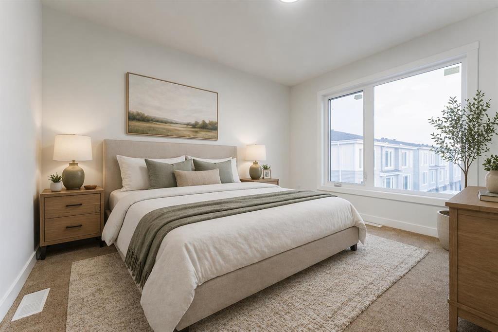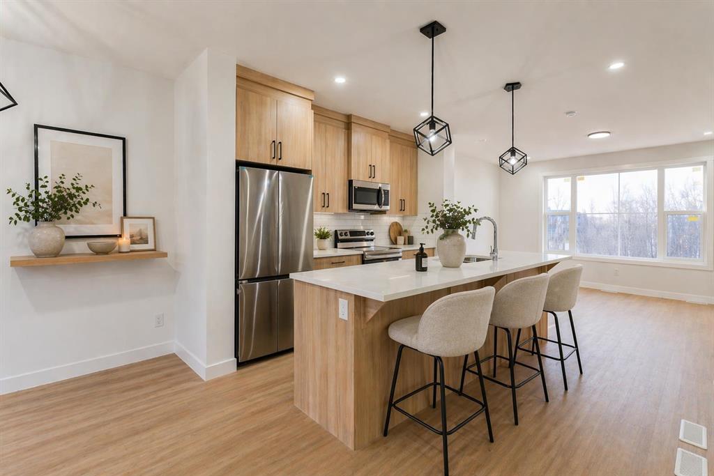 **First-time home buyer GST Rebate Available**. Show Home For Sale | 4 beds | 3.5 bath | Single Car Garage Attached Experience the ideal mix of comfort, style, and convenience in this stunning townhome in Saddlepeace (Saddleridge NE). The bright main floor offers an open-concept layout with a modern kitchen featuring quartz countertops, stainless steel appliances, full-height cabinets, and a large island. Upstairs includes 3 spacious bedrooms, a primary suite with a walk-in closet and ensuite, plus convenient laundry.